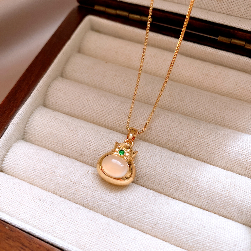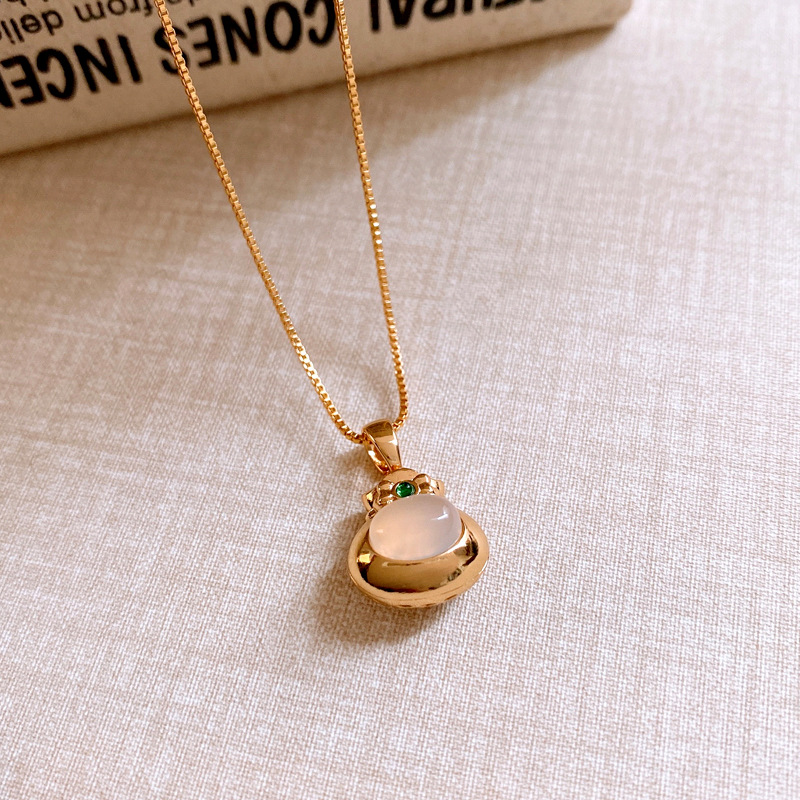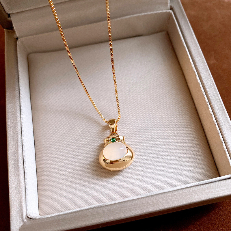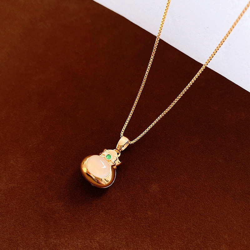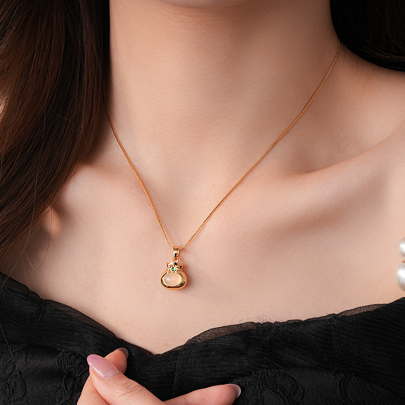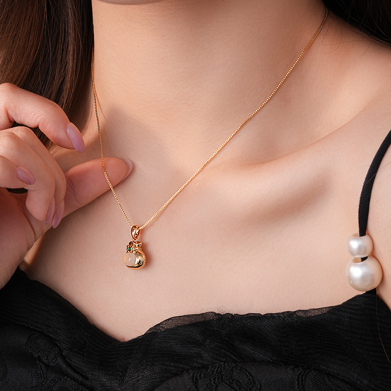 18k真金电镀玉髓锆石福袋吊坠项链简约高级感锁骨链新中式项饰女