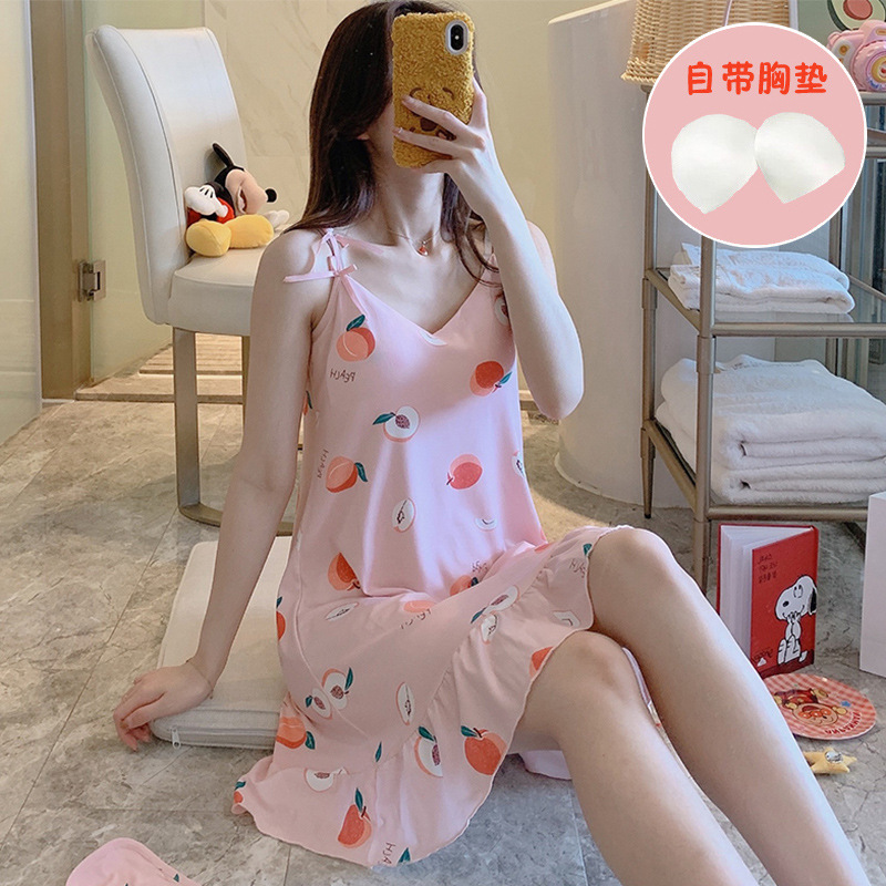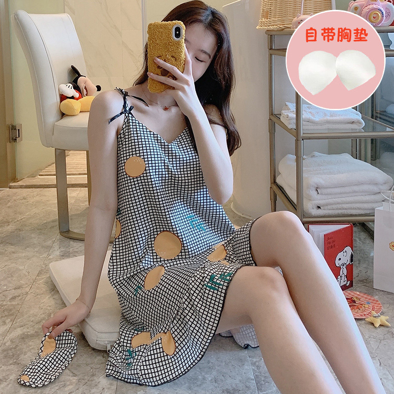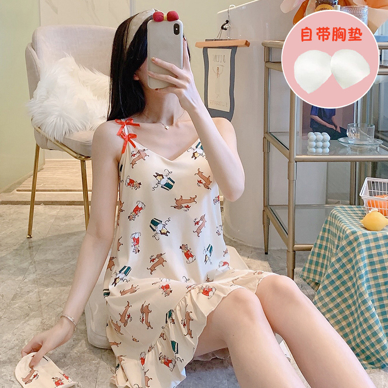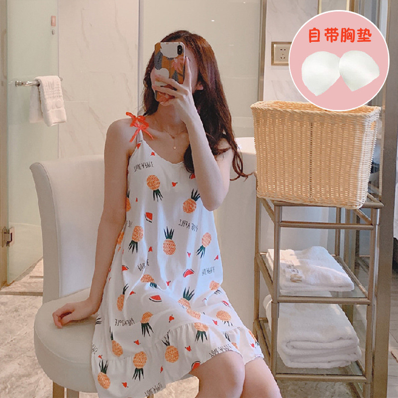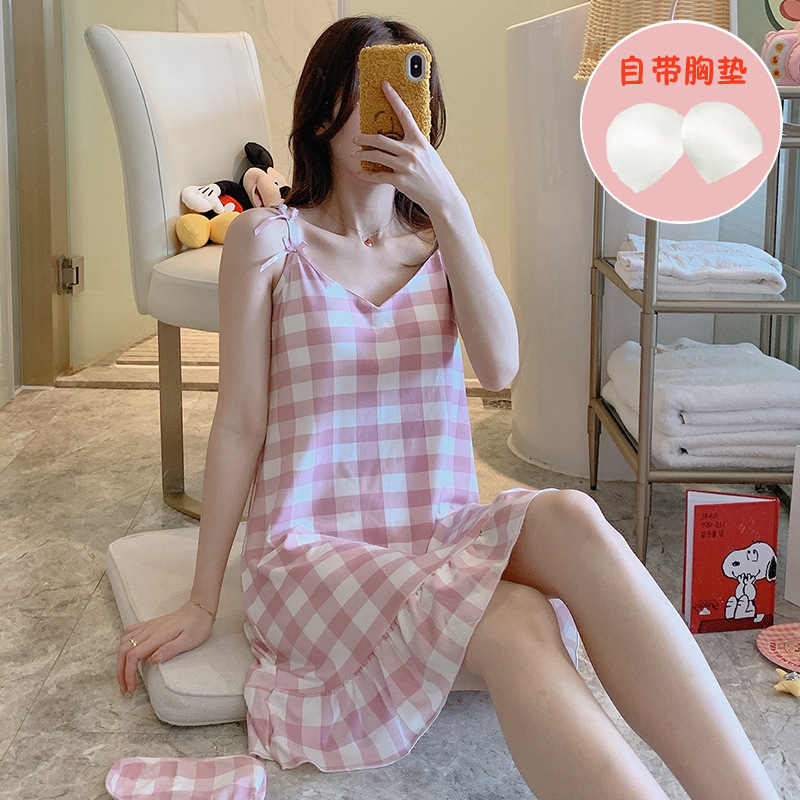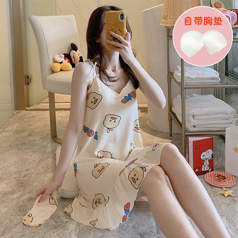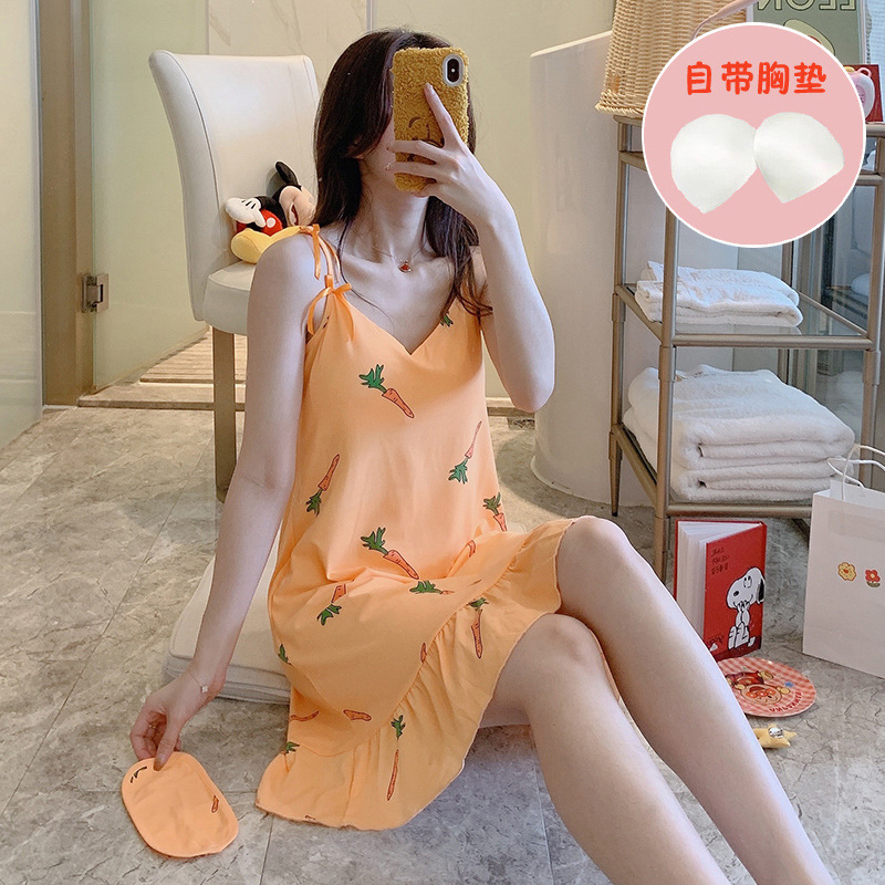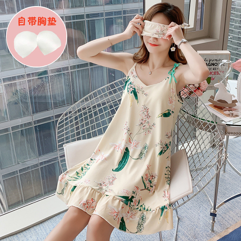 跨境新款带胸垫睡衣女夏韩版吊带睡裙宽松少女可爱学生150g送眼罩