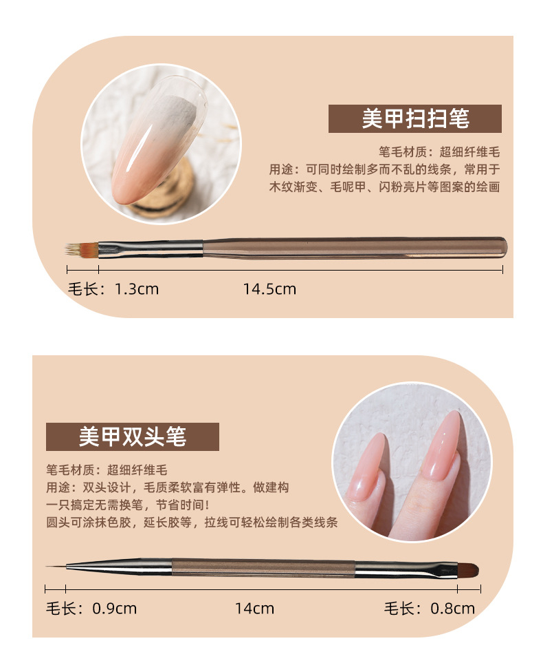 日式美甲笔刷子扫扫笔半透杆双头建构笔光疗彩绘拉线笔渐变笔批发