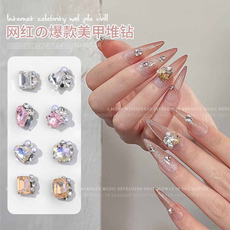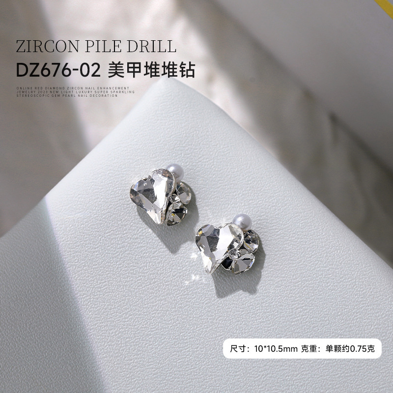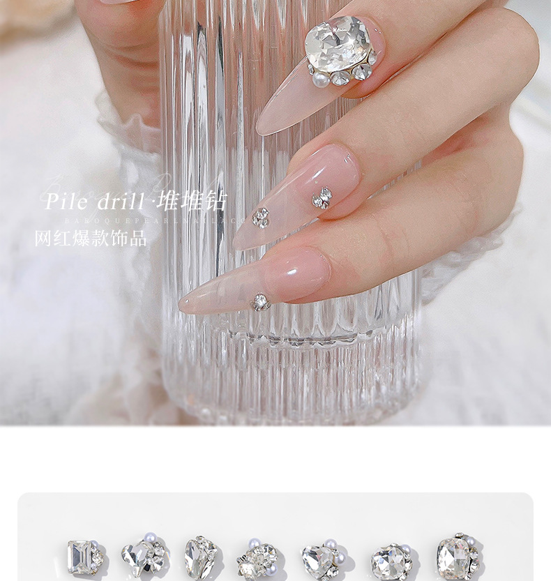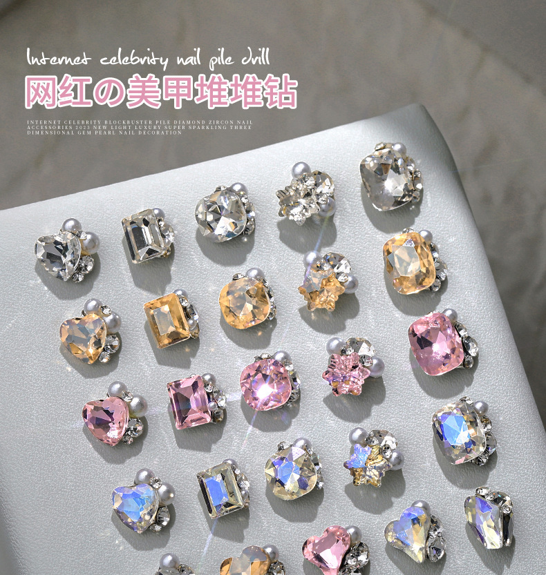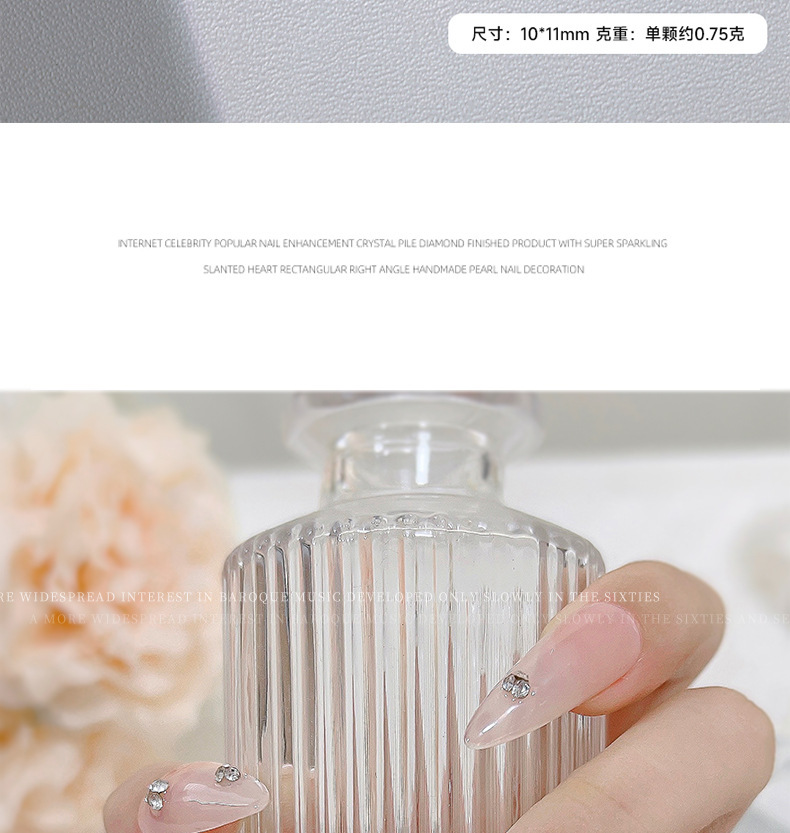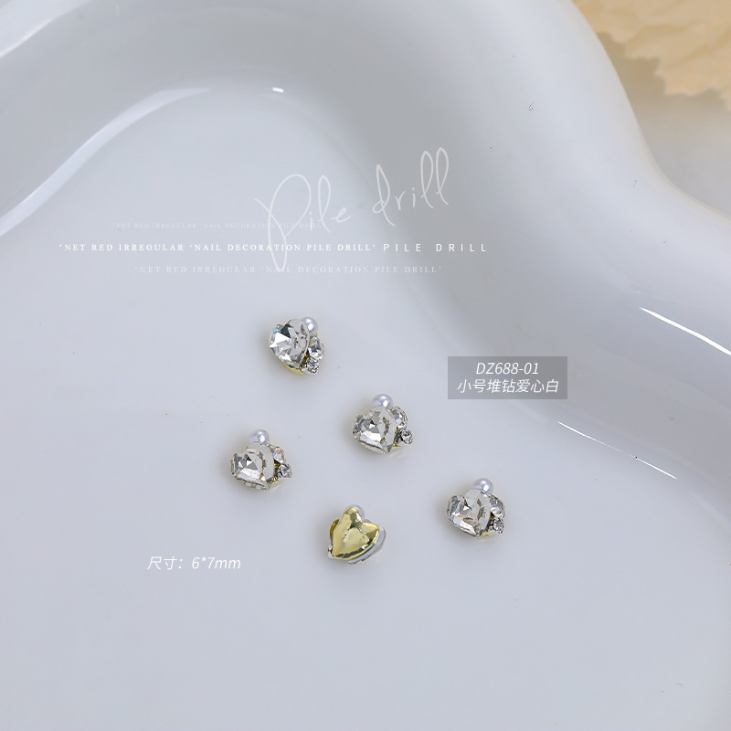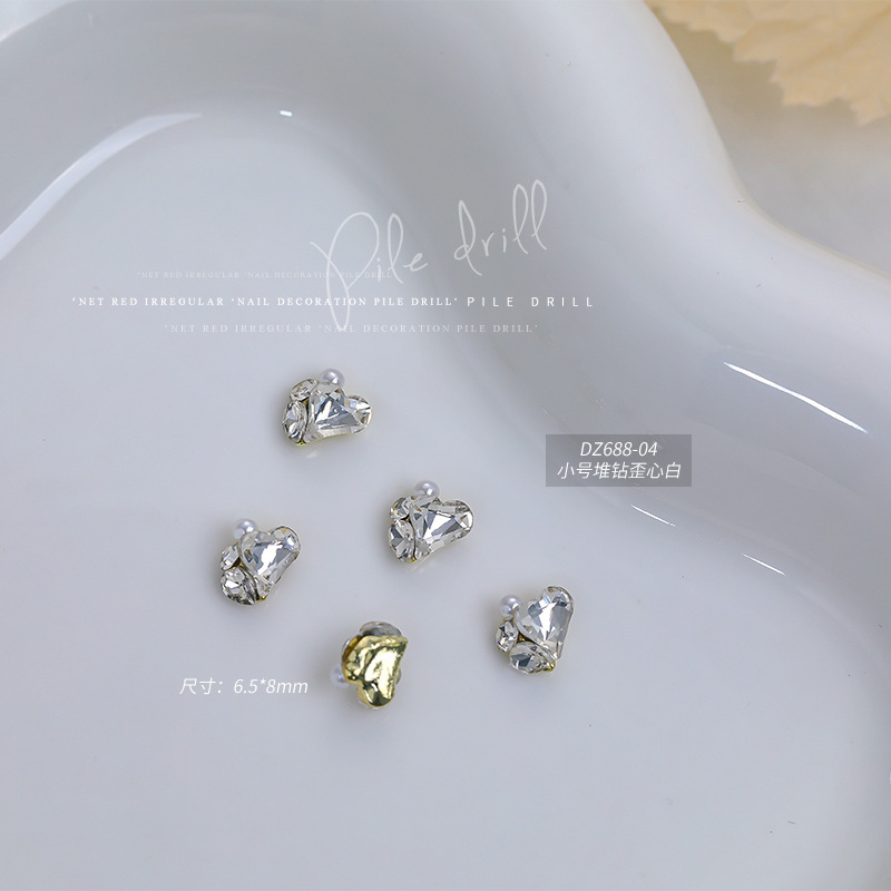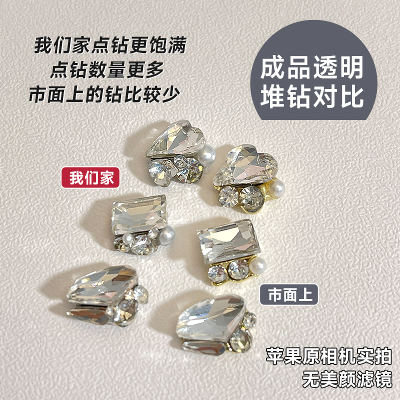 美甲堆钻饰品爆款透明白色歪桃心肥方立体手工镶珍珠成品美甲钻球
