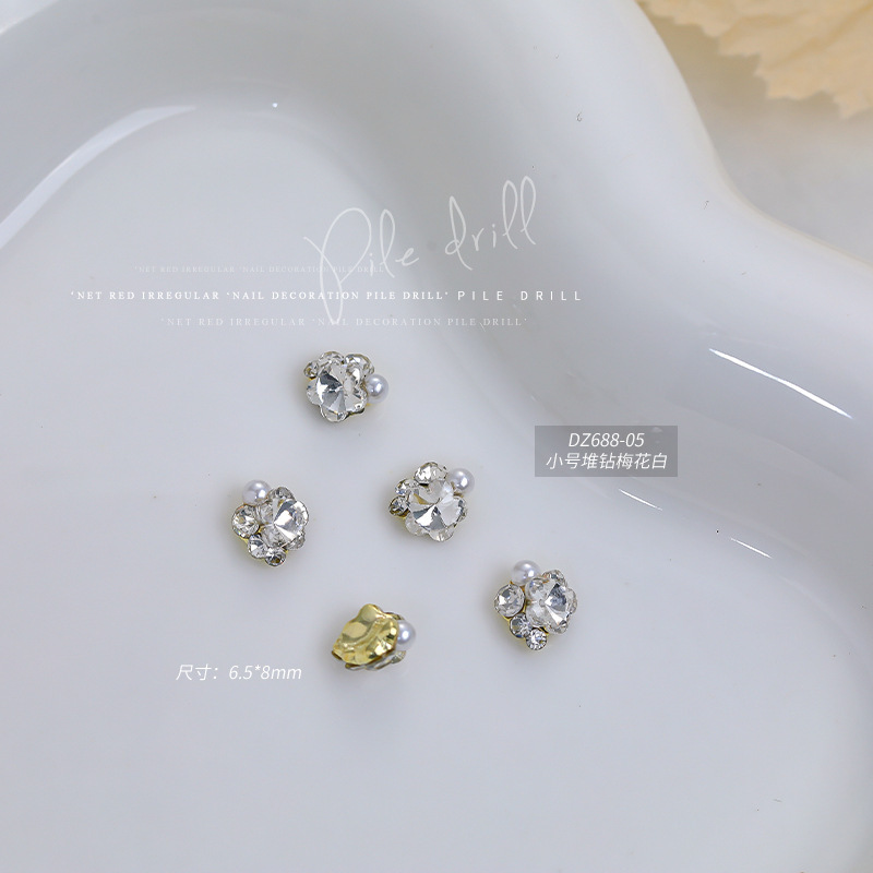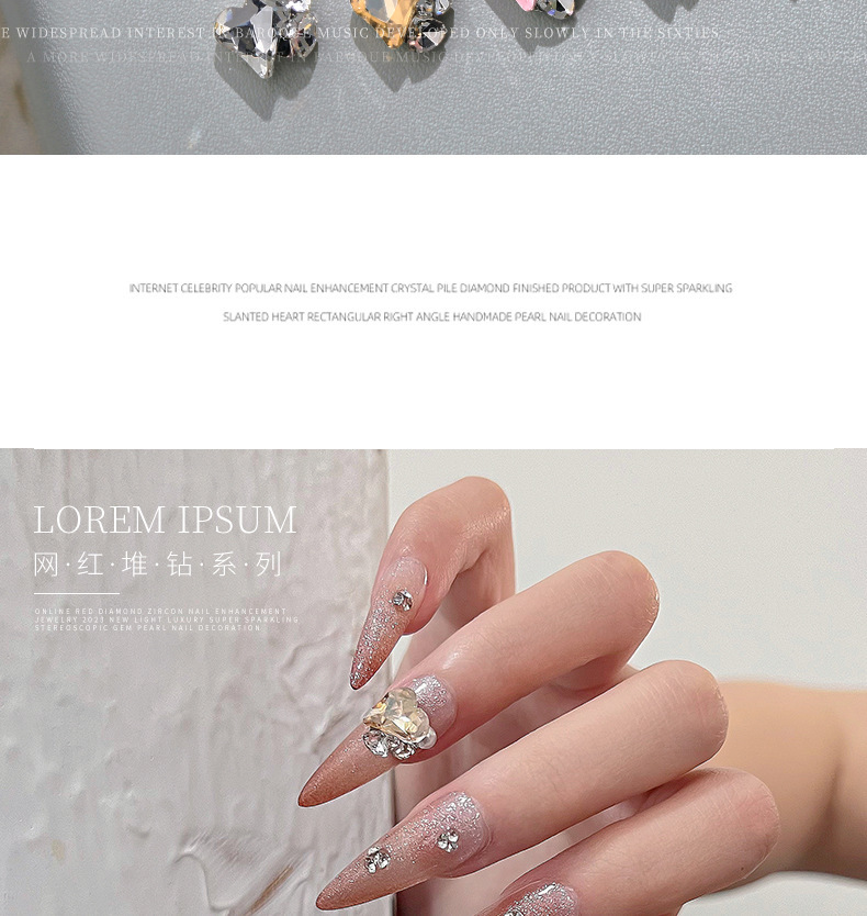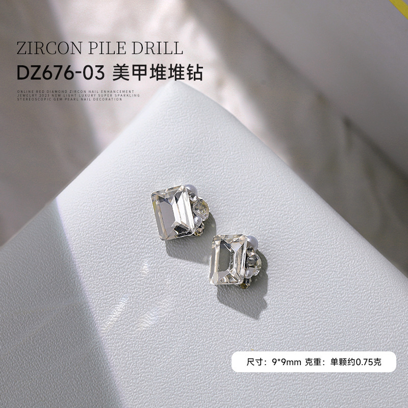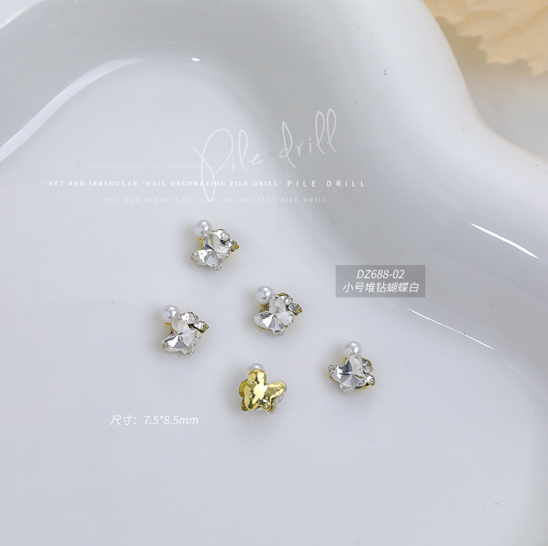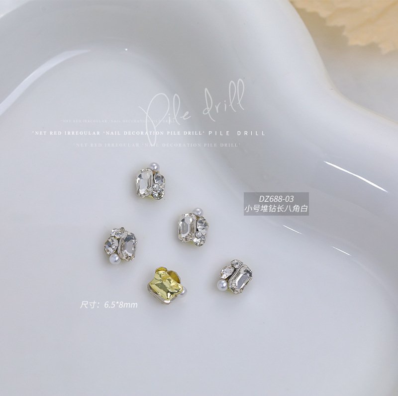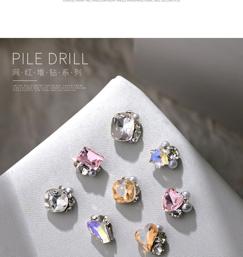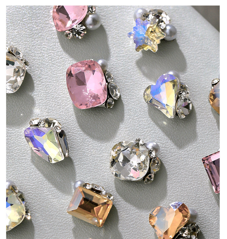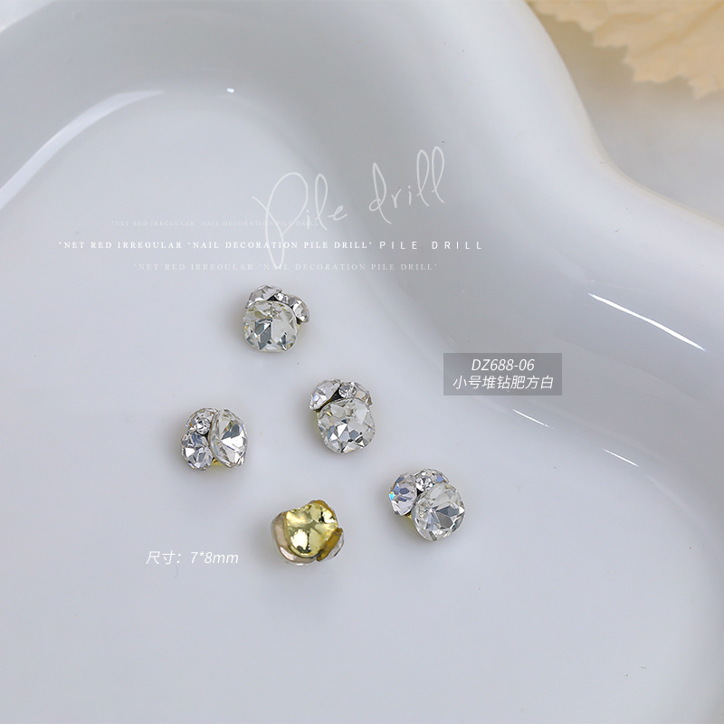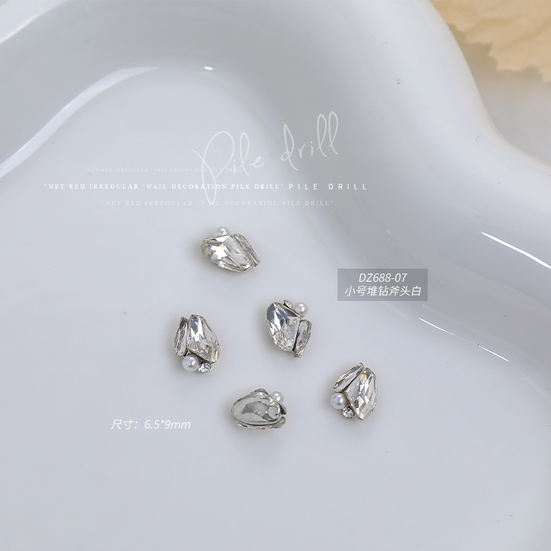 美甲堆钻饰品爆款透明白色歪桃心肥方立体手工镶珍珠成品美甲钻球