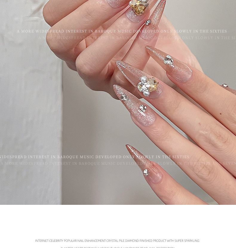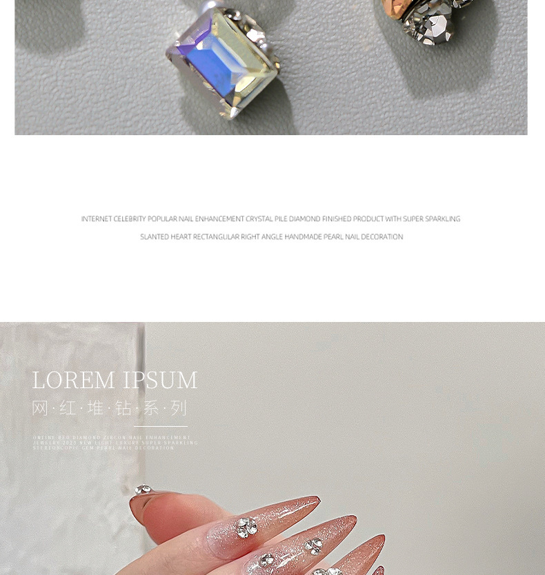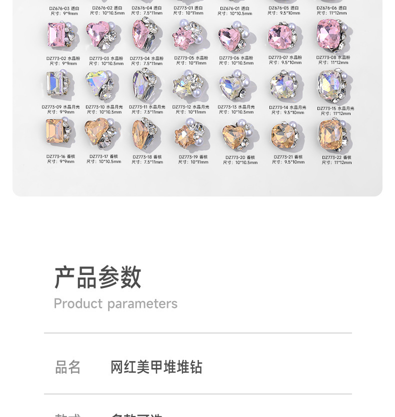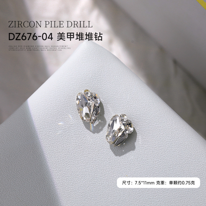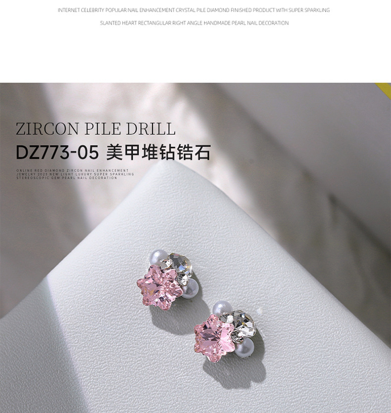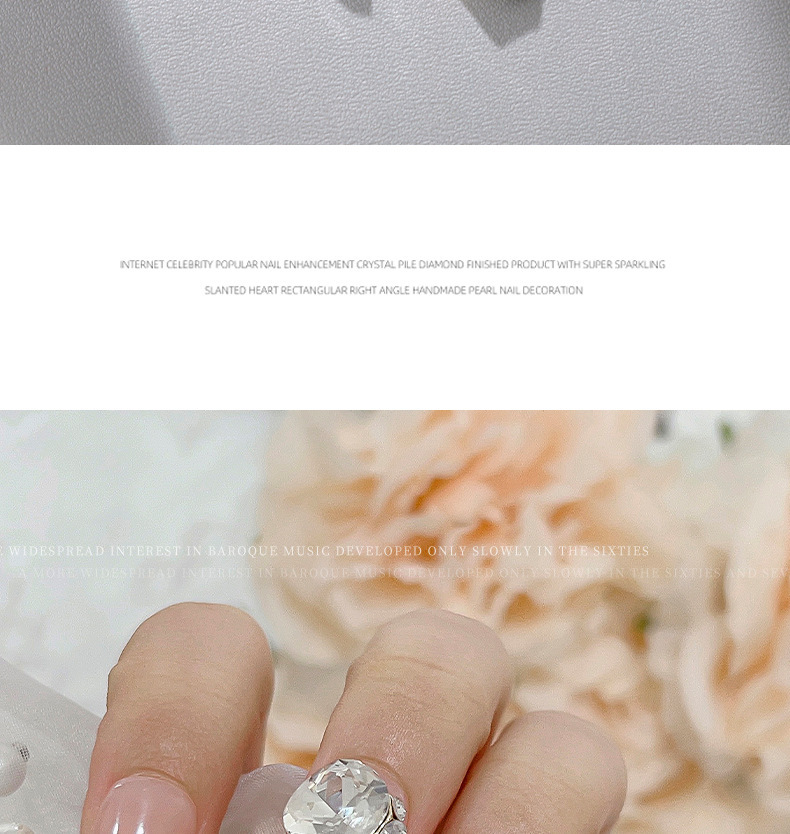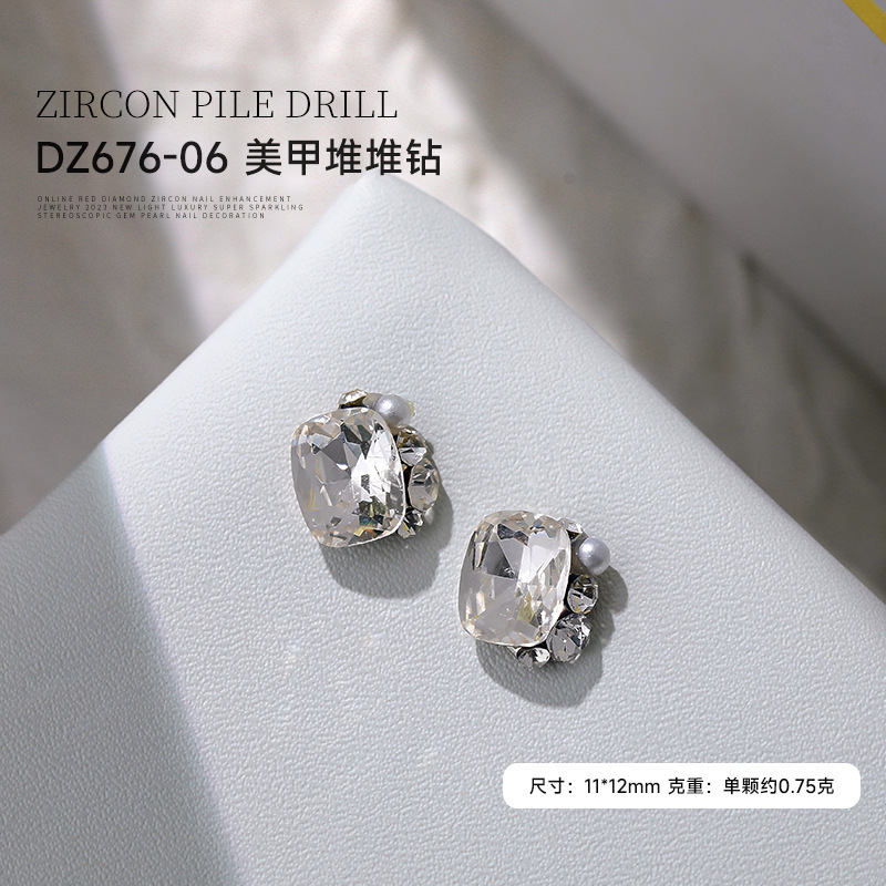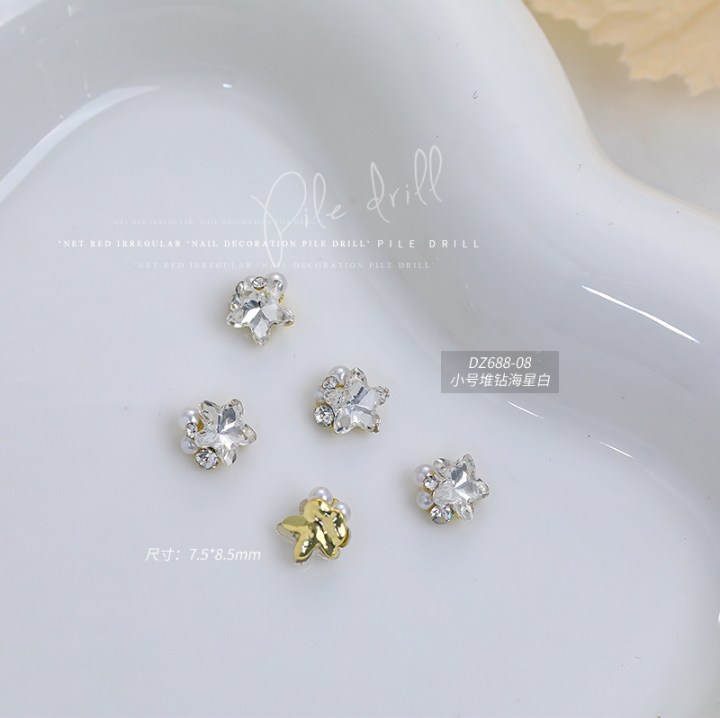 美甲堆钻饰品爆款透明白色歪桃心肥方立体手工镶珍珠成品美甲钻球