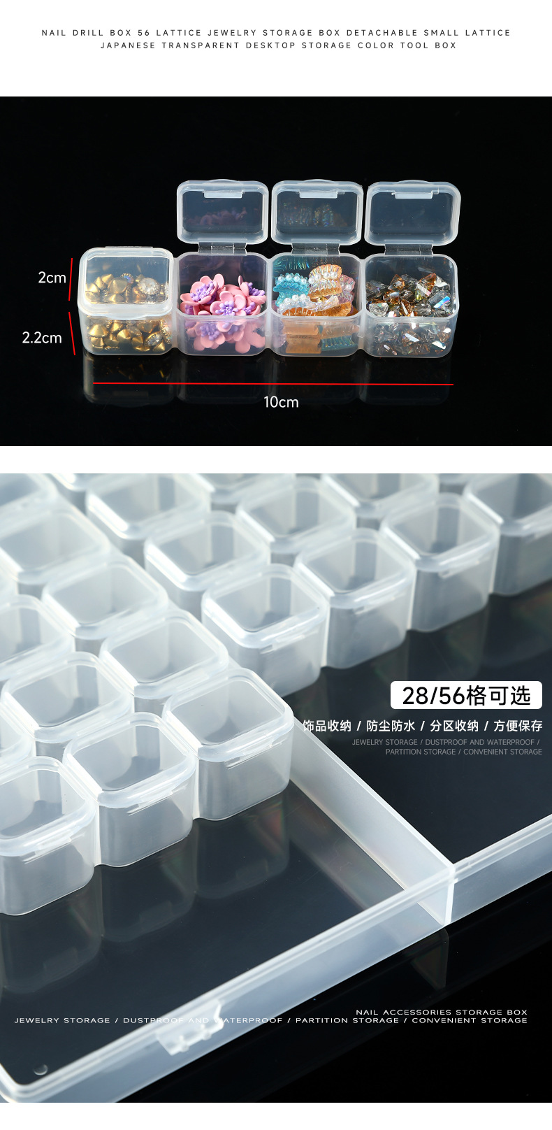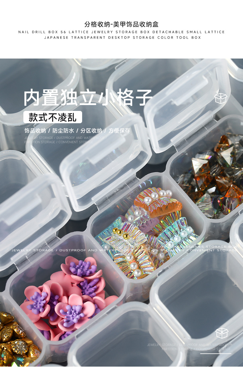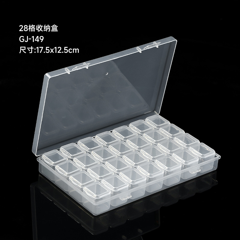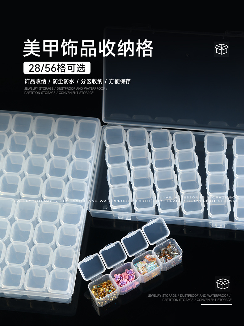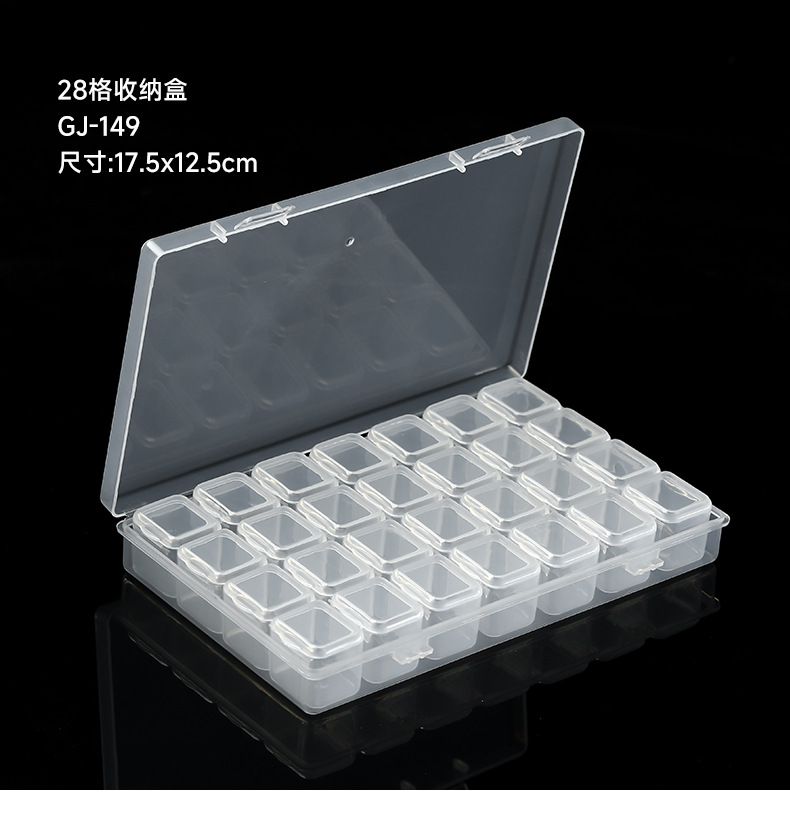 美甲饰品收纳盒28格可拆分盒指甲钻合金钻小配件塑料空盒工具批发