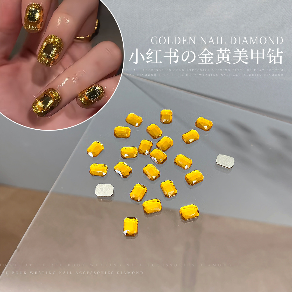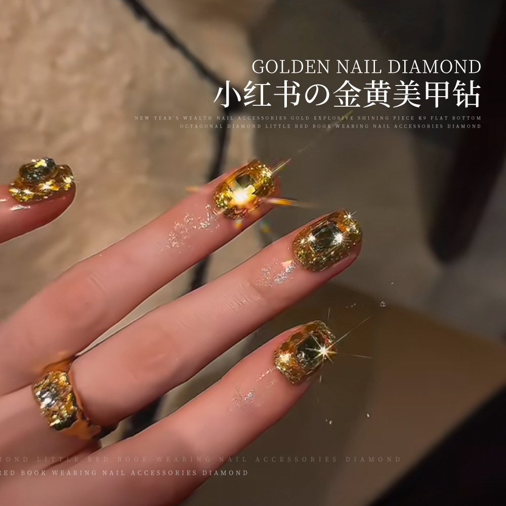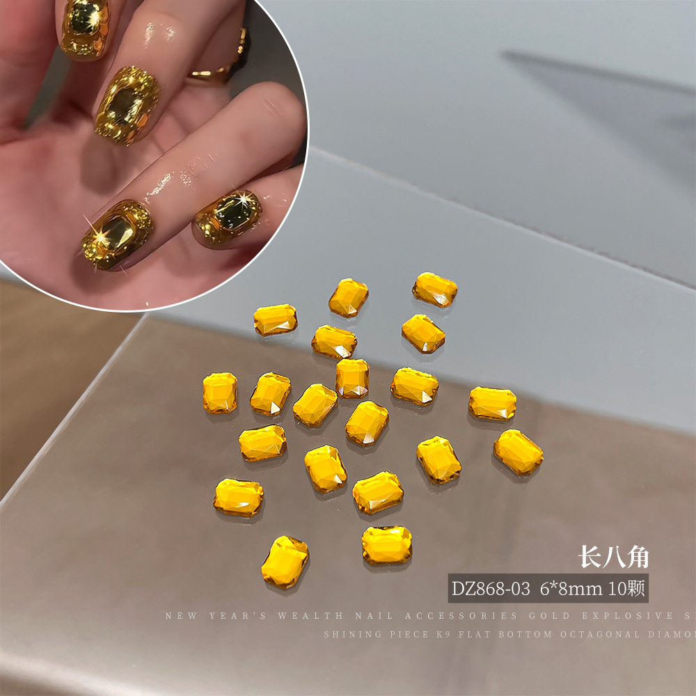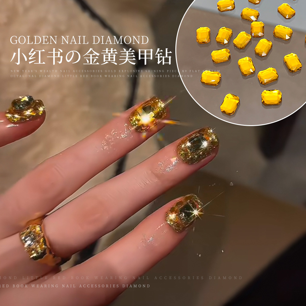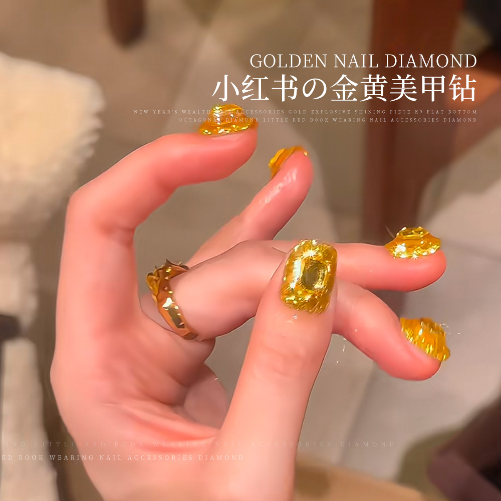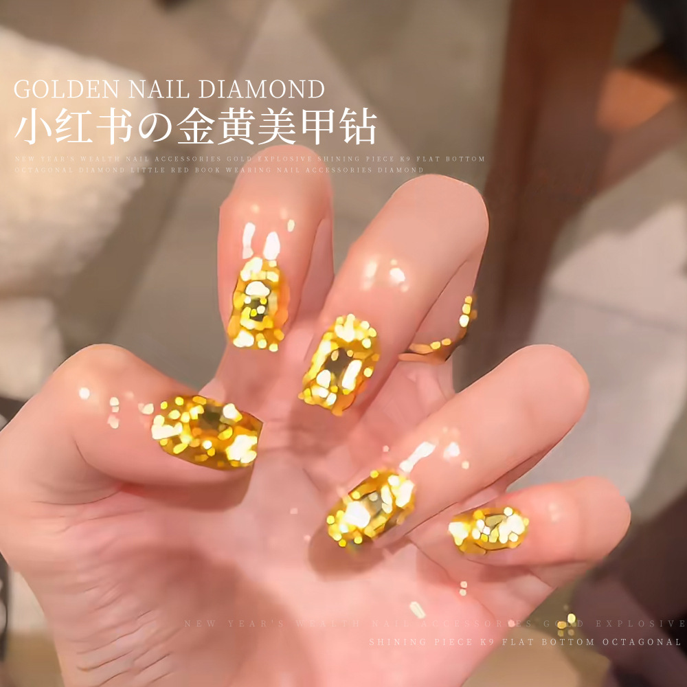 网红爆款金黄色美甲钻超闪长八角富家千金小姐平底异形美甲饰品钻