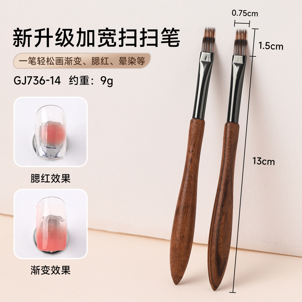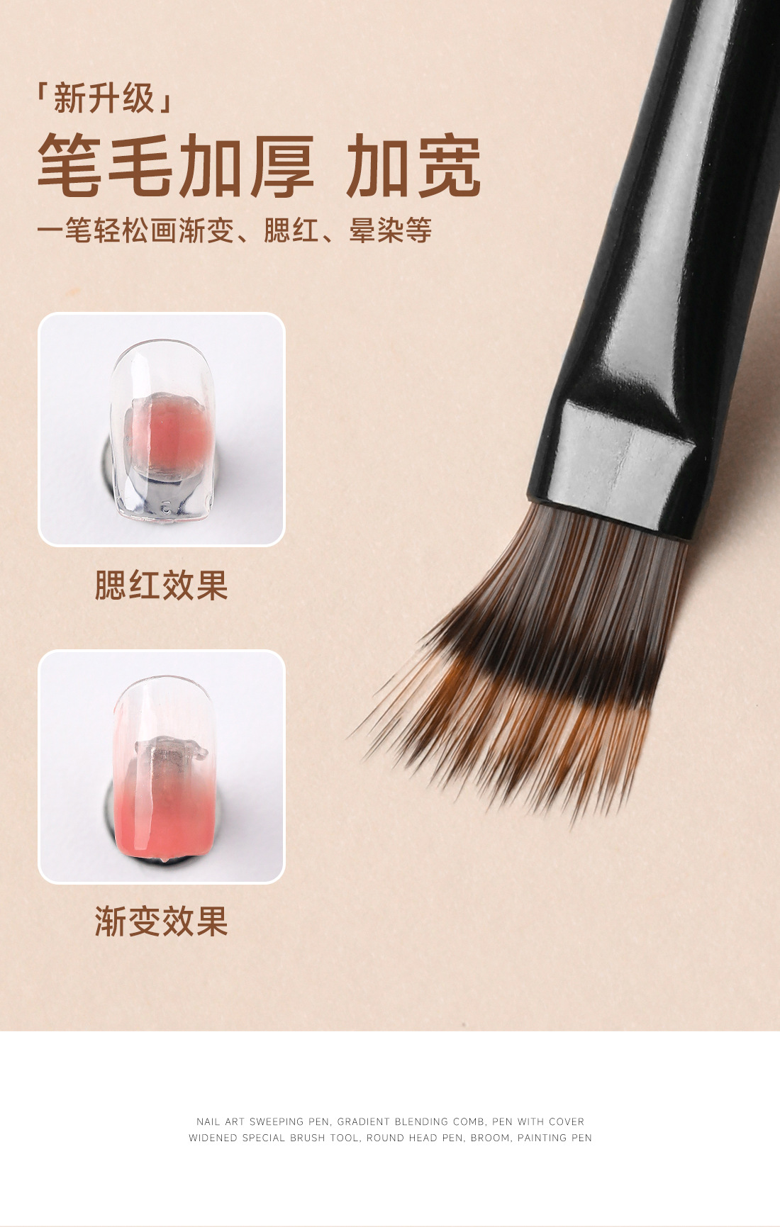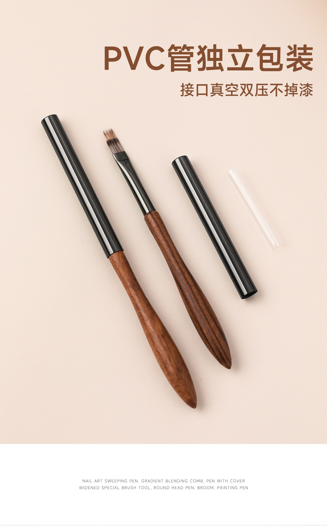 新款美甲笔檀木杆带盖加宽扫扫笔晕染渐变笔彩绘笔美甲店专用工具