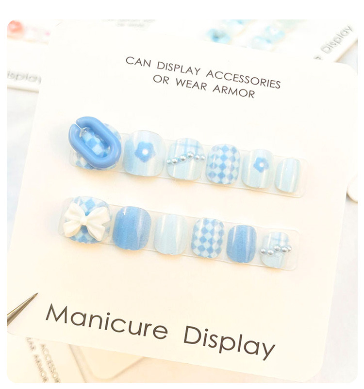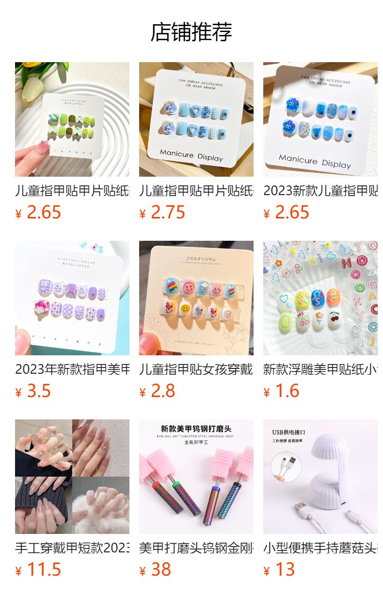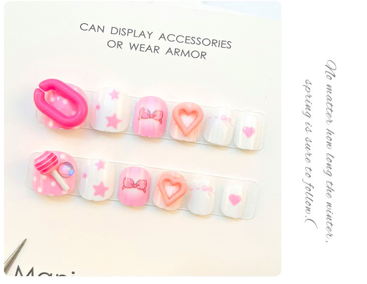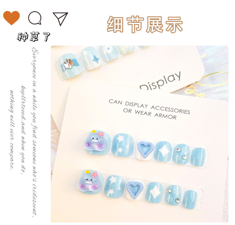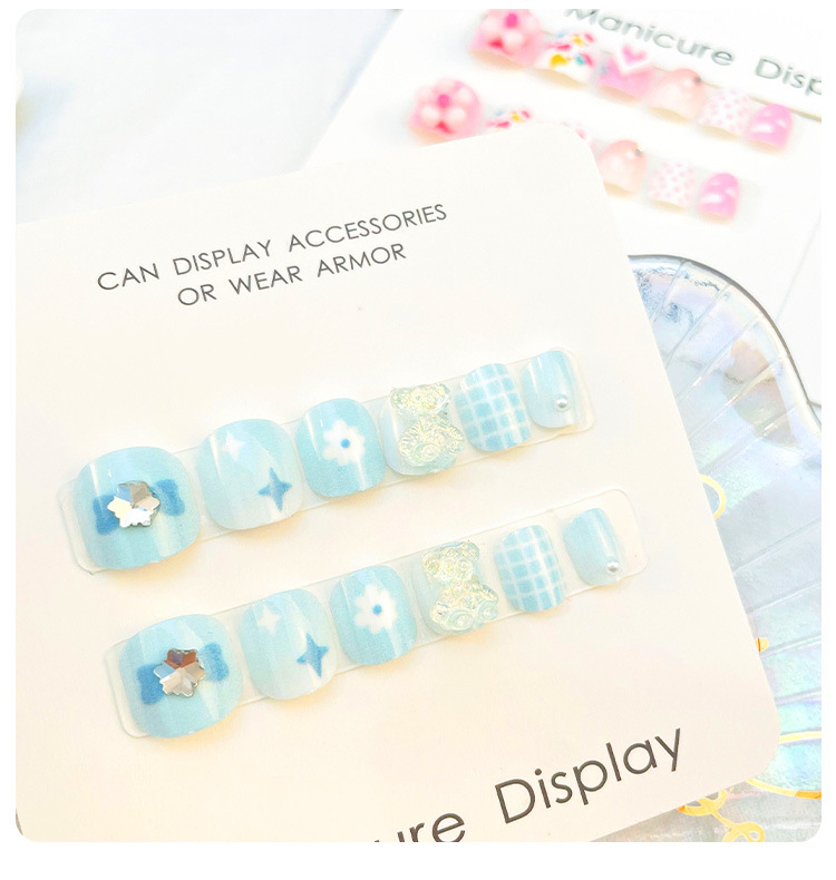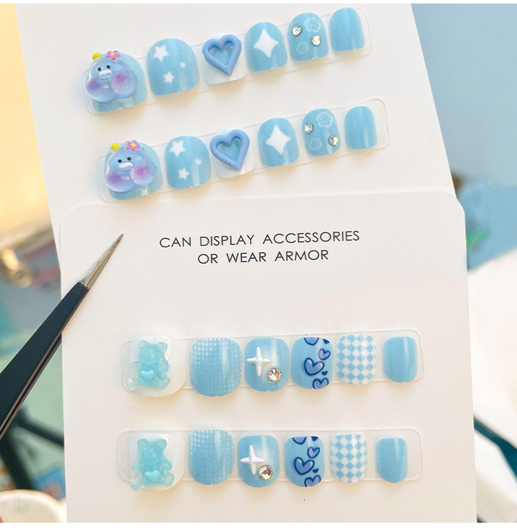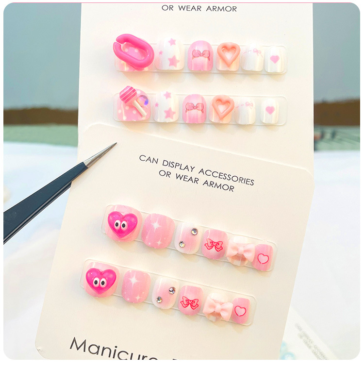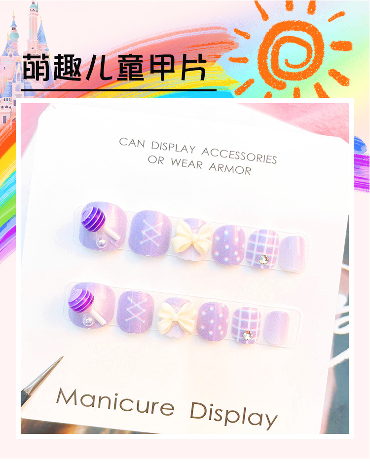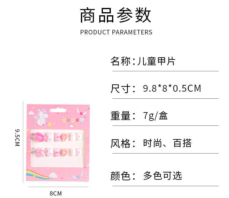 儿童穿戴甲女童专用指甲贴片网红大童女孩美甲短款点钻甲片批发