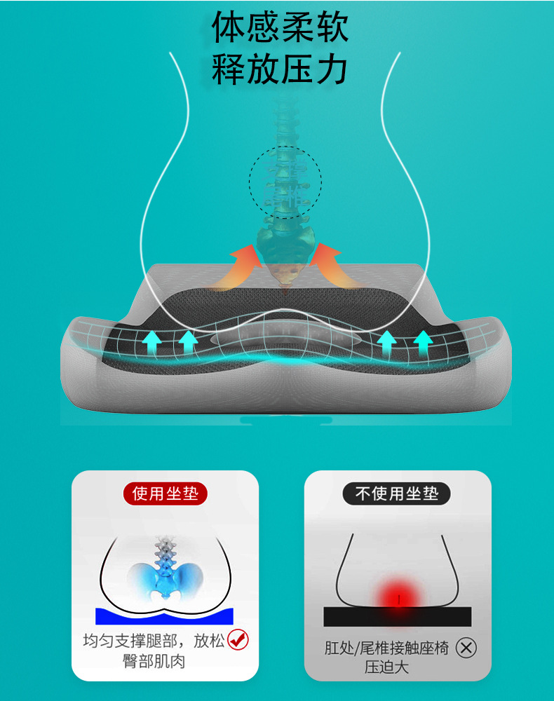 跨境新款椅子坐垫办公室久坐不累海绵垫家用学生屁垫防滑记忆棉