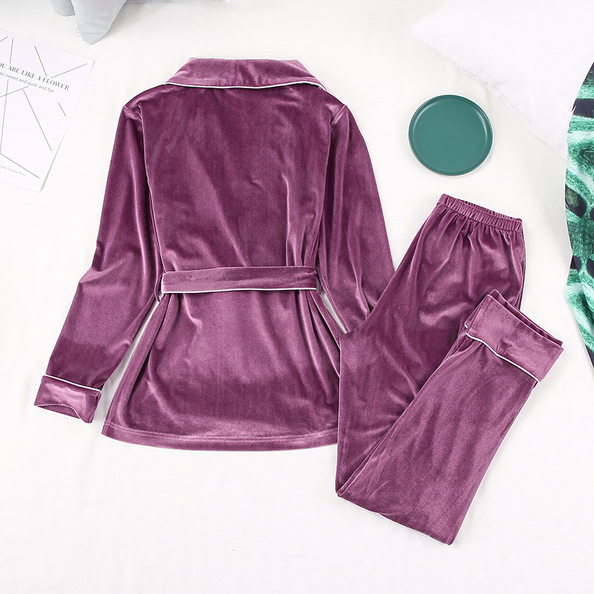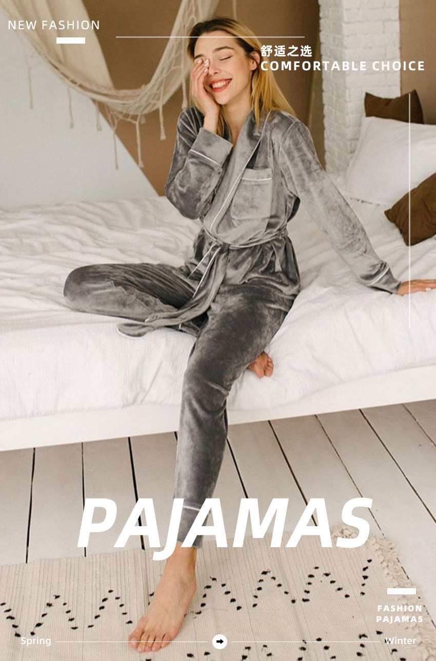 2025新款女士家居服长袖睡袍金丝绒套装开衫加厚保暖欧美跨境睡衣
