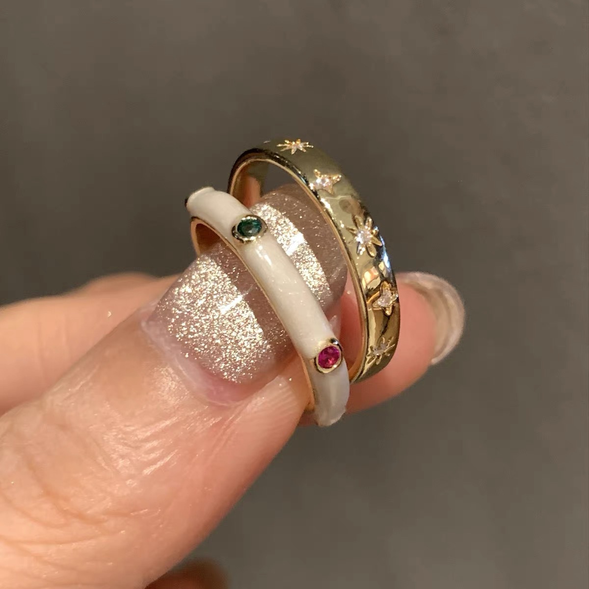 法式慵懒珐琅戒指女套装小众设计轻奢气质高级感复古食指指环戒指