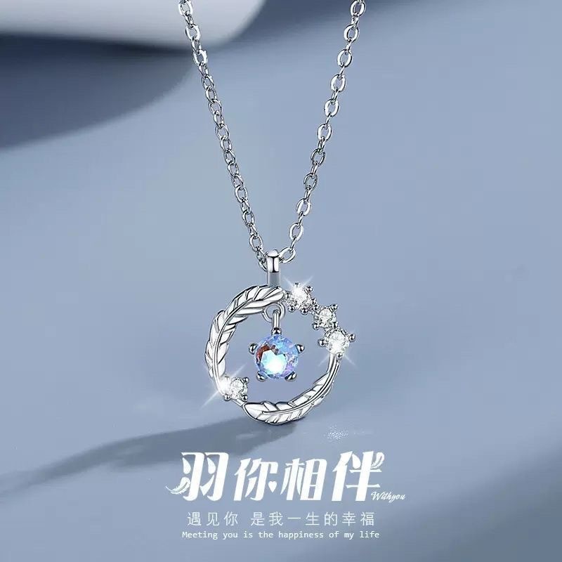双羽项链女月光石合金轻奢小众甜美感女士礼物送女友羽你相伴