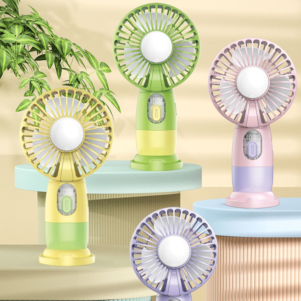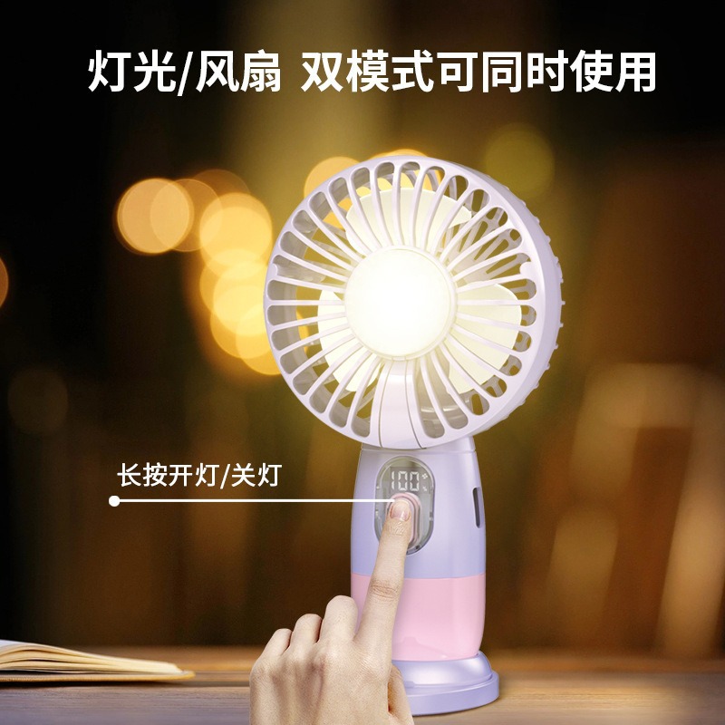 新款usb手持小风扇带灯光功能桌面时尚支架充电式便携风扇可代发