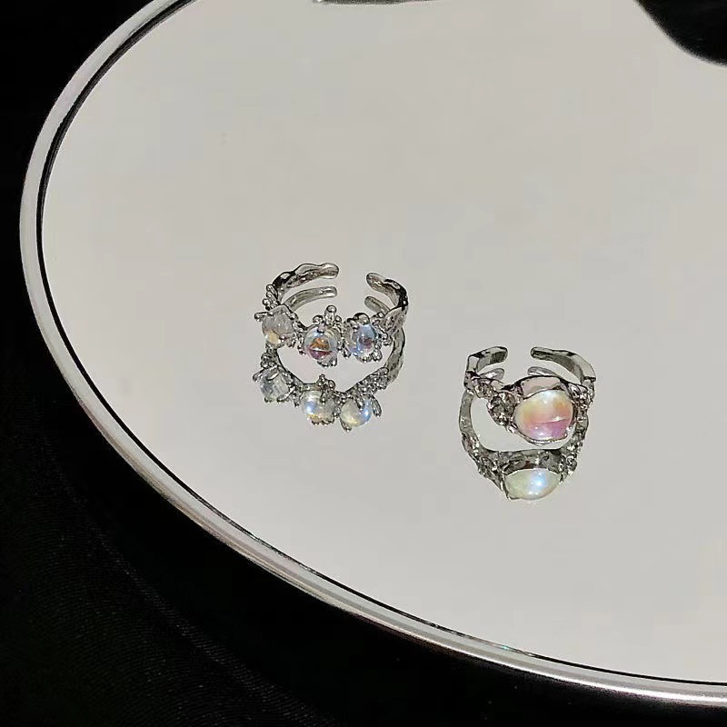 月下美人 镶嵌月光石肌理开口戒指不规则纹理透明冷淡风指环小众
