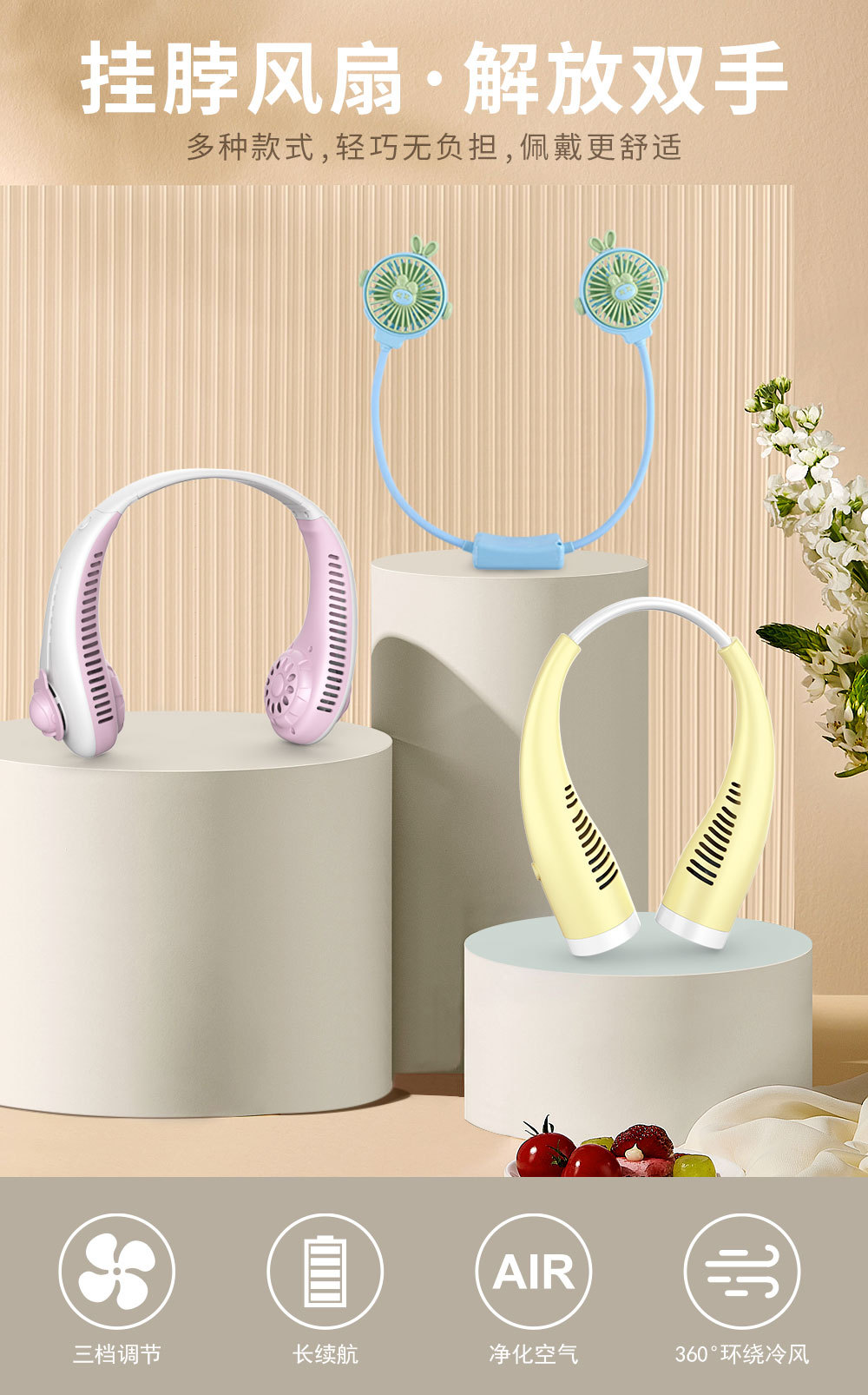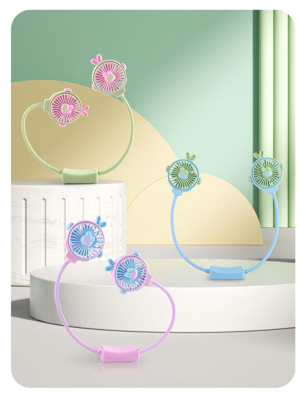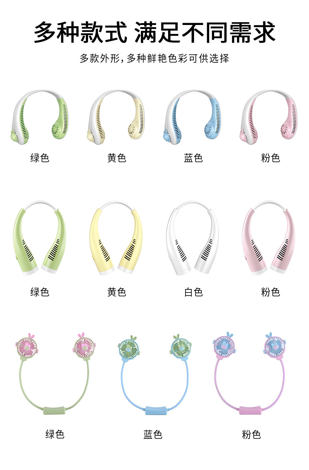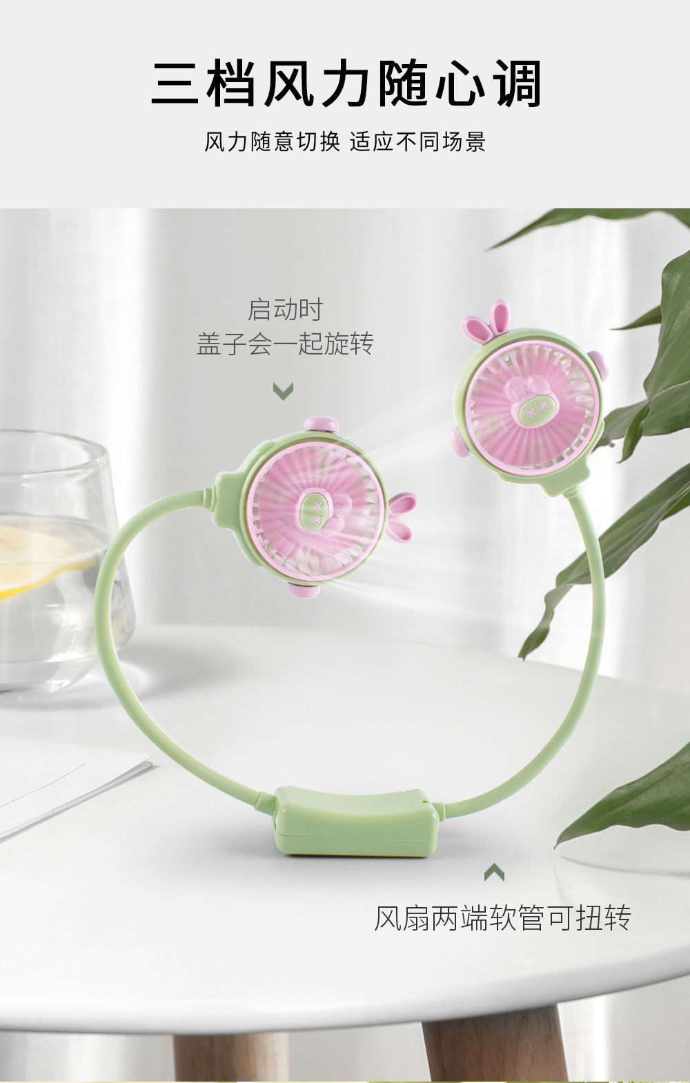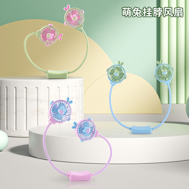 新款萌兔挂脖风扇 便携式懒人usb户外宿舍可爱挂脖风扇批发送人
