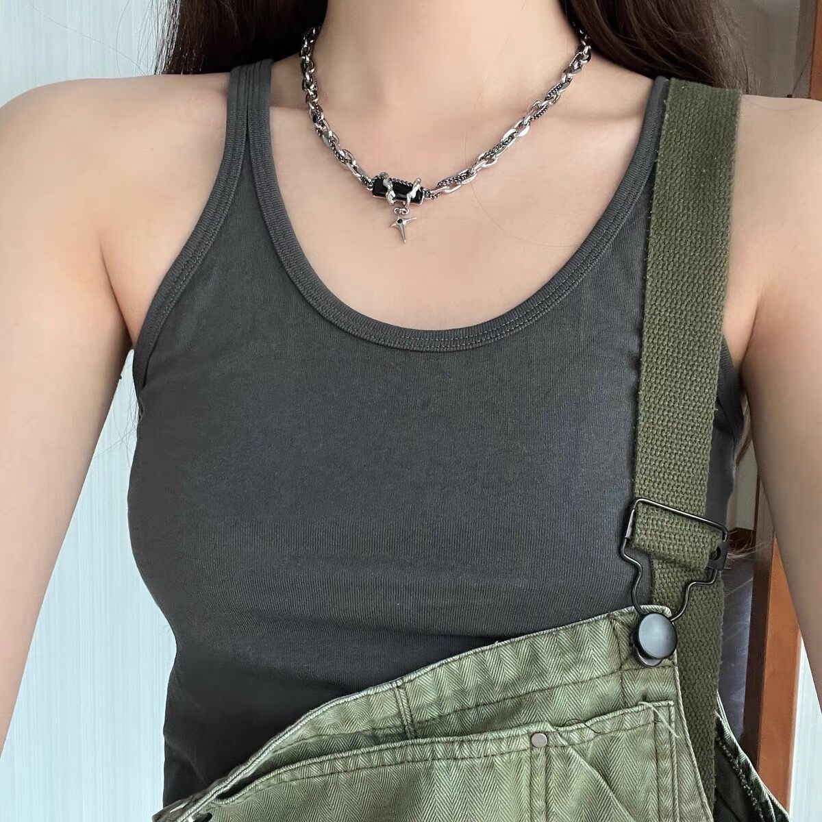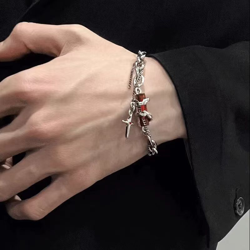 星体缠绕黑钻手链男钛钢设计新款百搭万圣节配饰女简约芒星手链潮