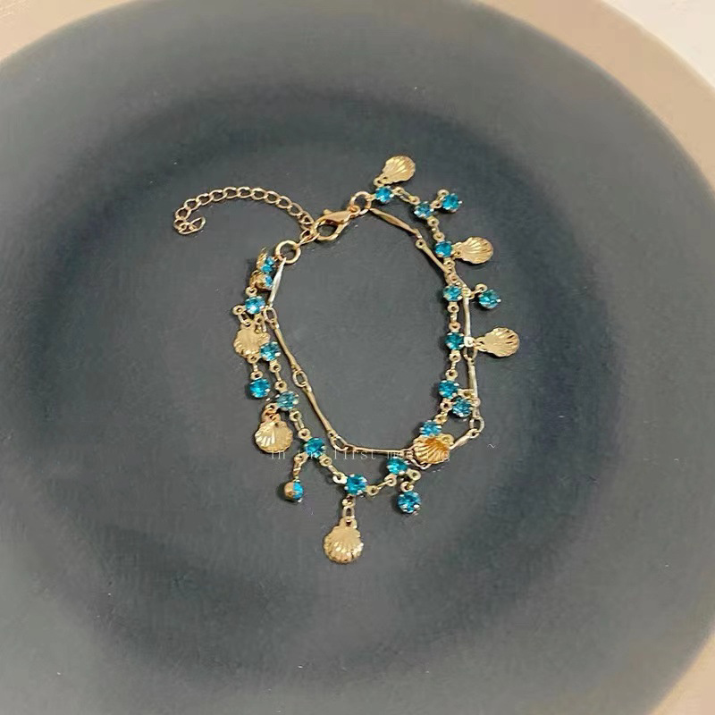 海的女儿~蓝色锆石金色贝壳项链百搭手链小众设计感轻奢首饰