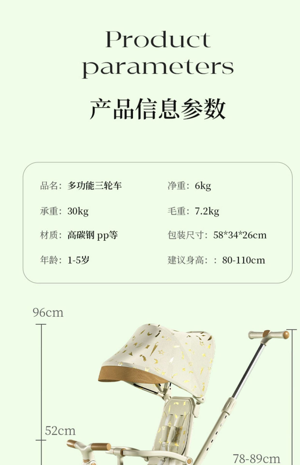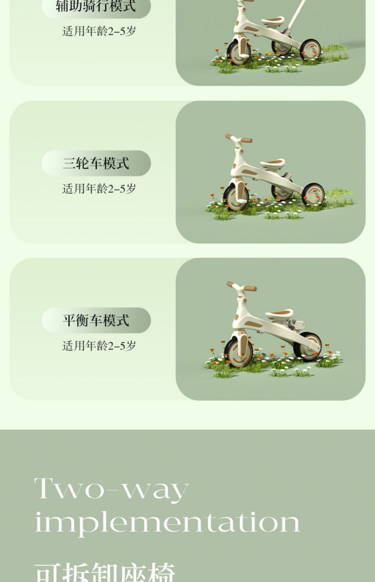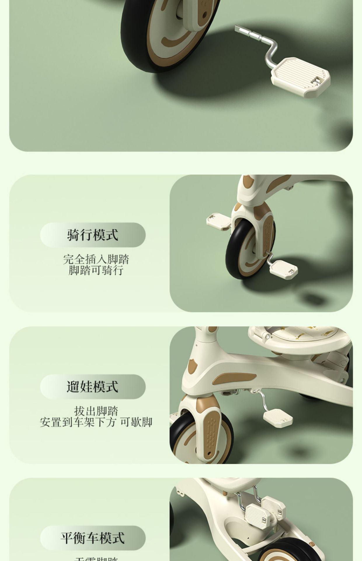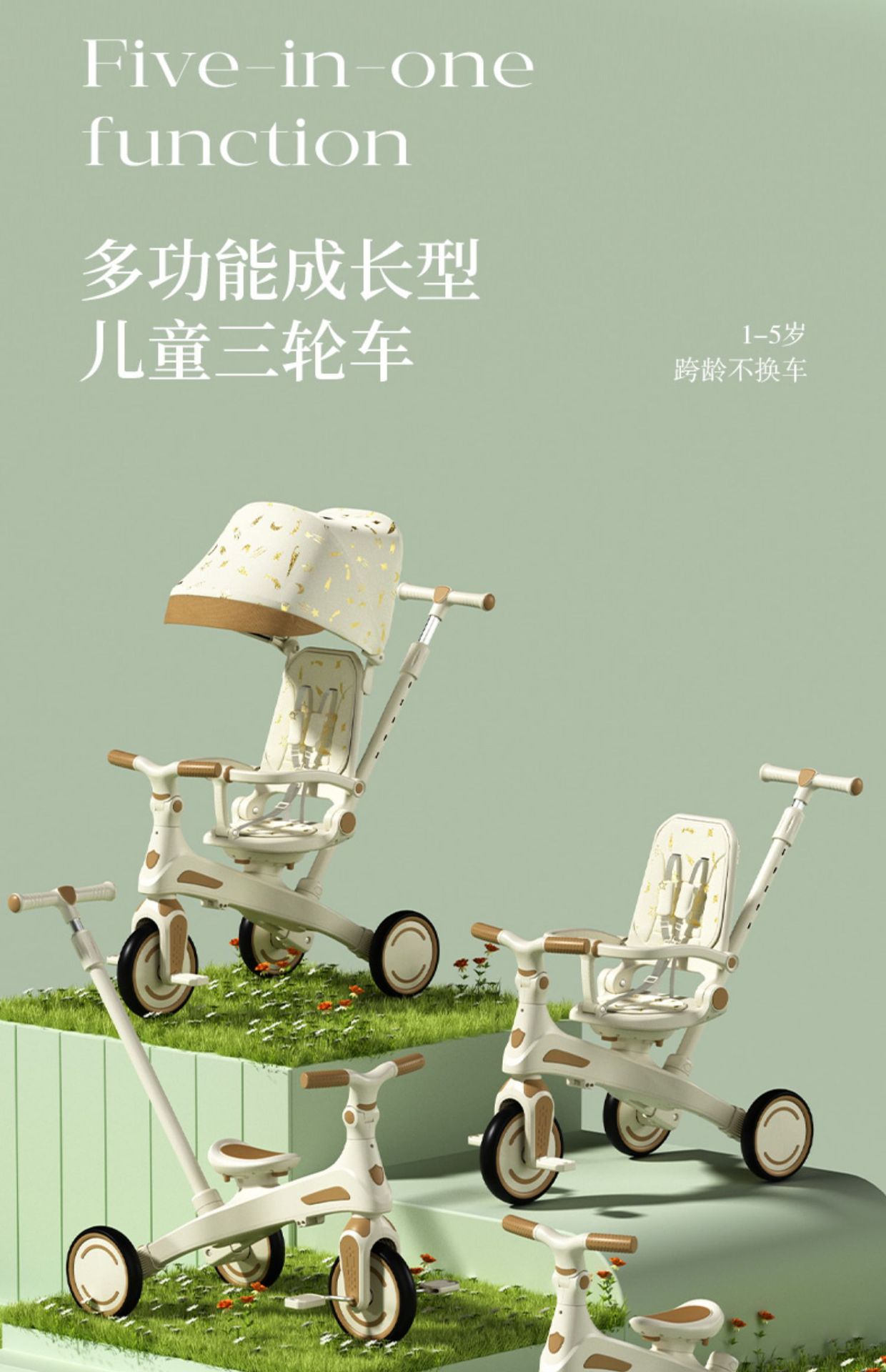 儿童脚踩三轮车五合一手推车子轻便型遛娃神器脚踏车宝宝可坐可推