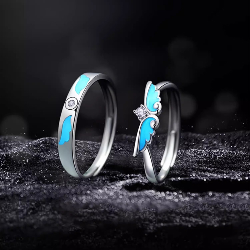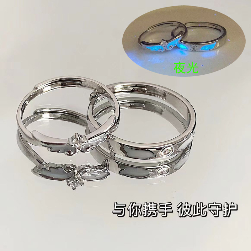 天使之翼情侣对戒ins小众设计高级感发光戒指礼物送女男友
