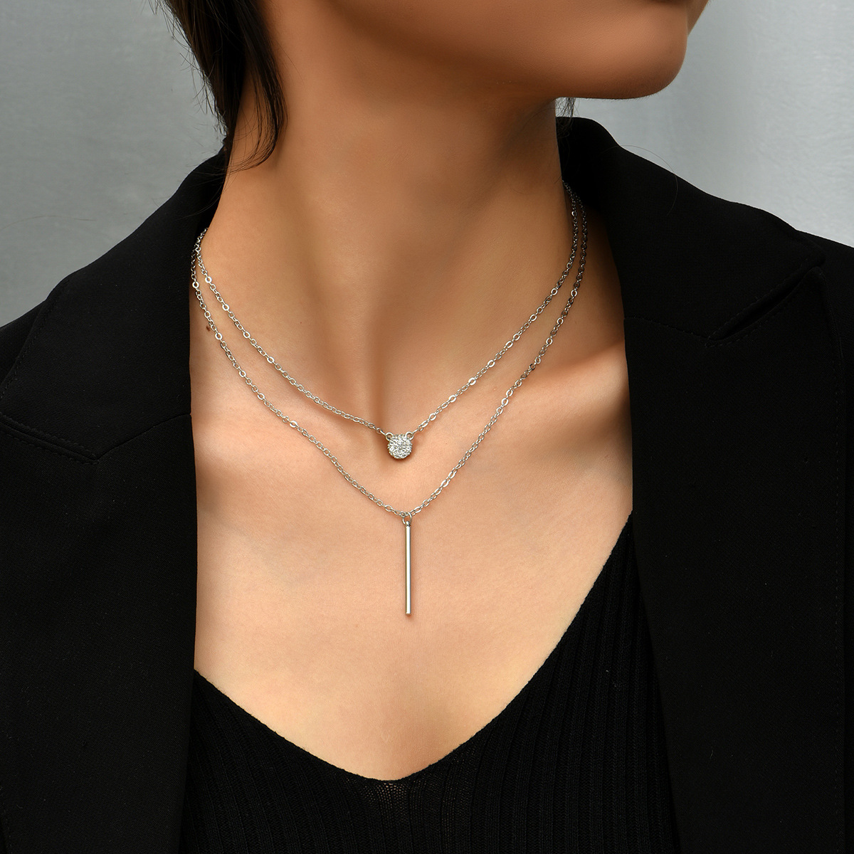 双层项链女ins锁骨链 原宿风街拍百搭 简约小众镶钻气质颈链潮