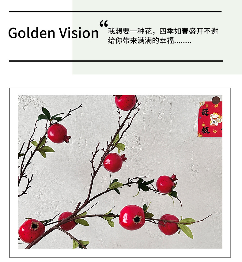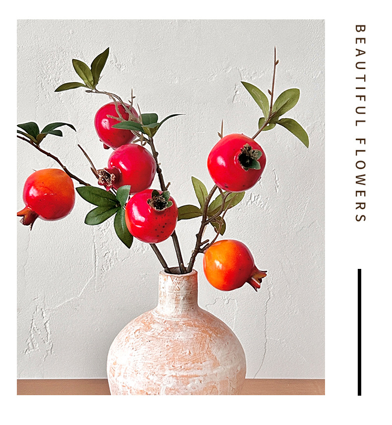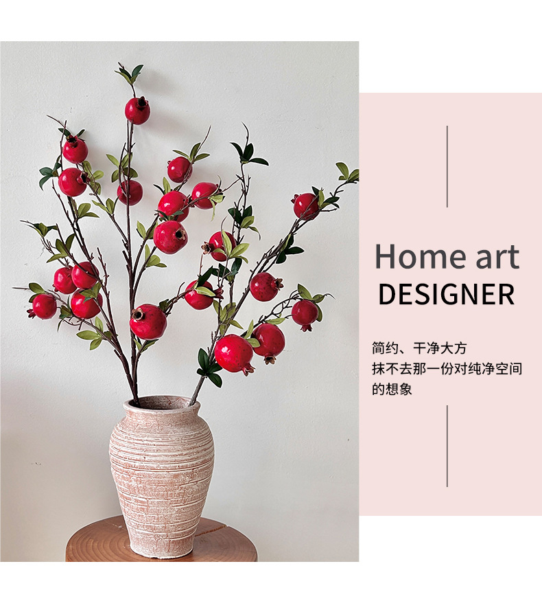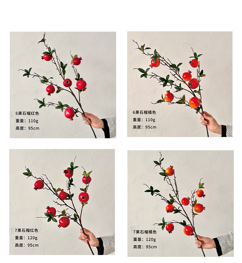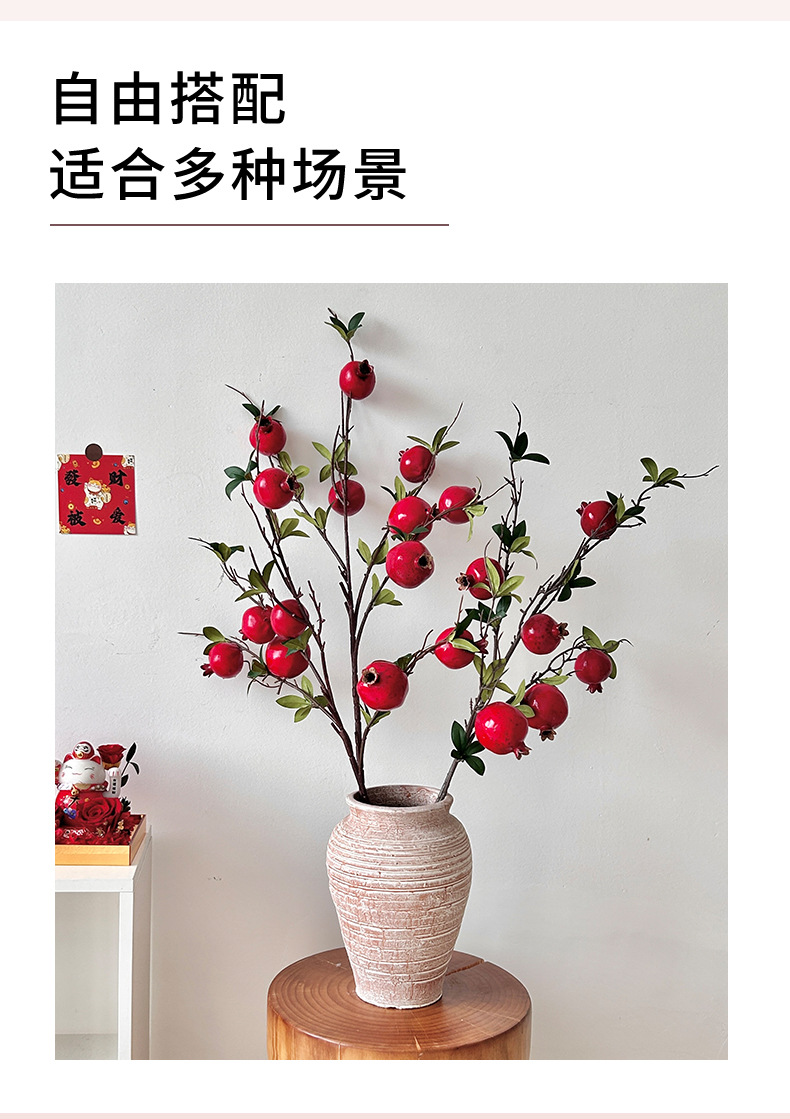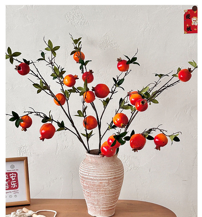 仿真花假花石榴枝石榴花摆件年宵花树枝客厅玄关餐桌落地花艺装饰