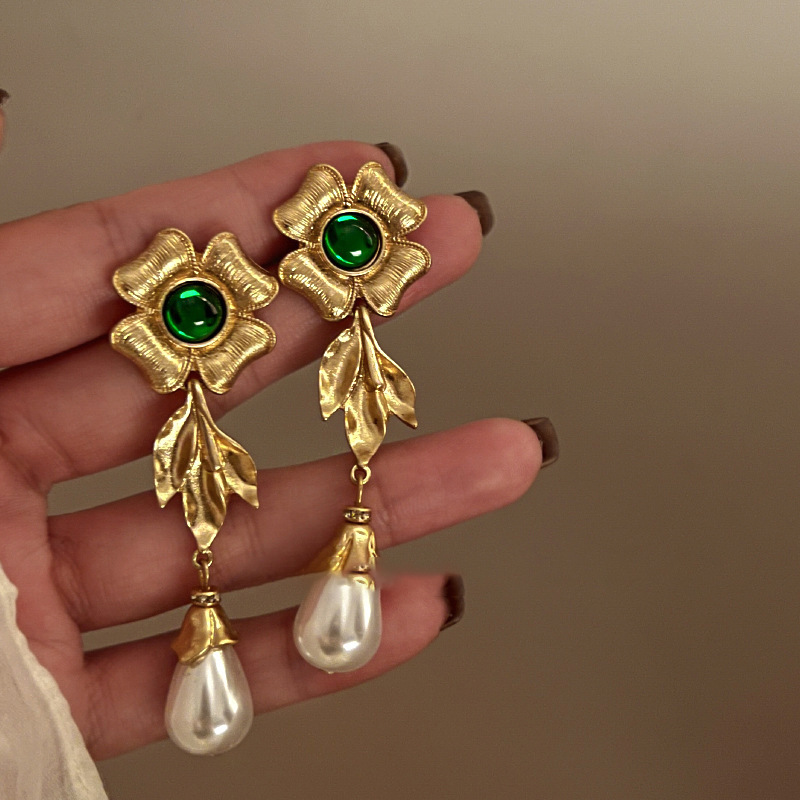 复古小众花朵爱心耳环中古vintage夸张耳钉时尚高级感耳饰批发女