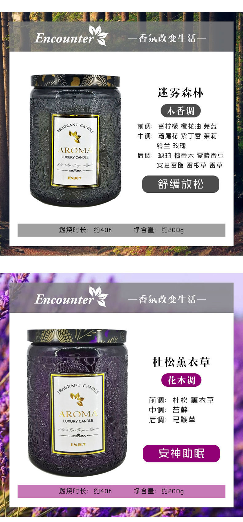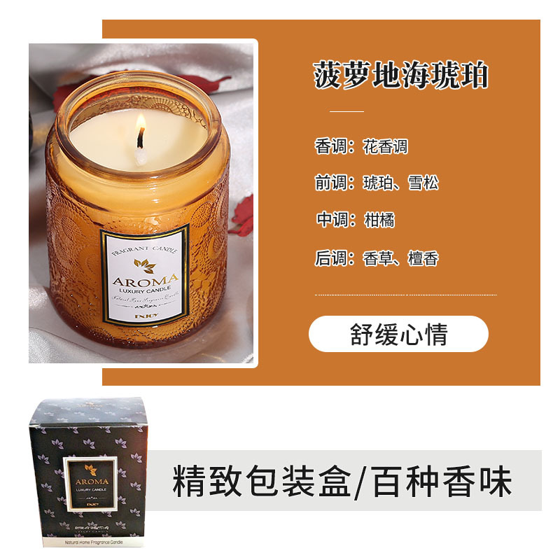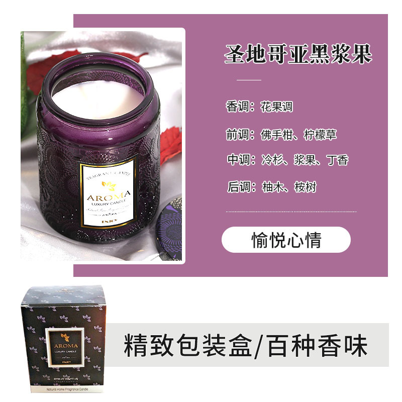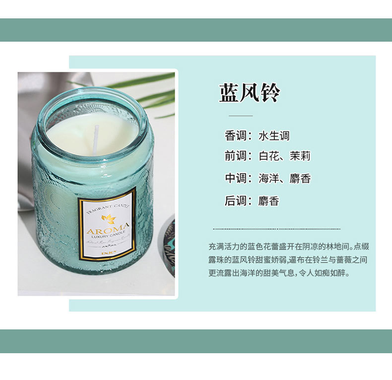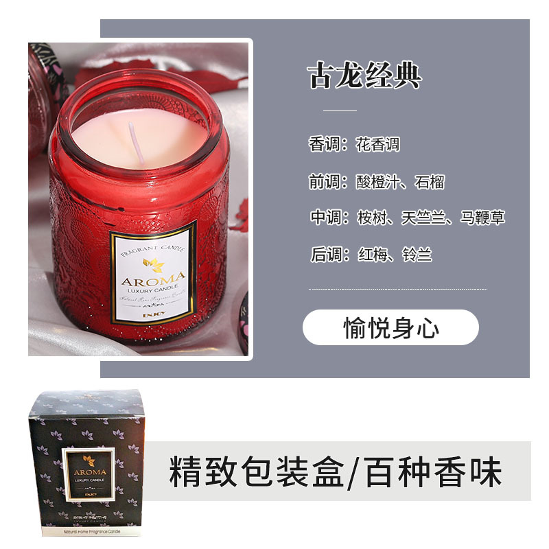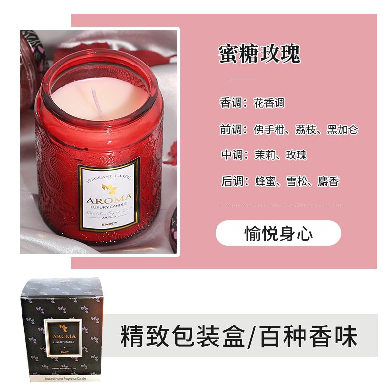 香薰蜡烛彩色玻璃浮雕无烟大豆蜡创意家用香氛女生卧室摆件伴手礼