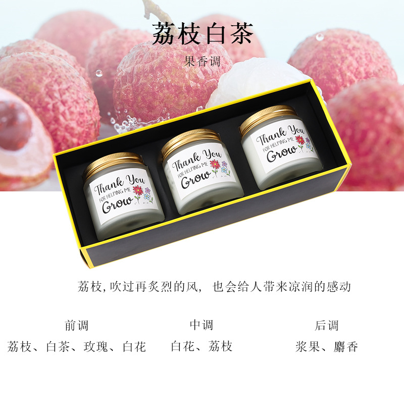 香薰蜡烛礼盒3个装大豆蜡无烟情人节生日礼物套装家用久留香氛