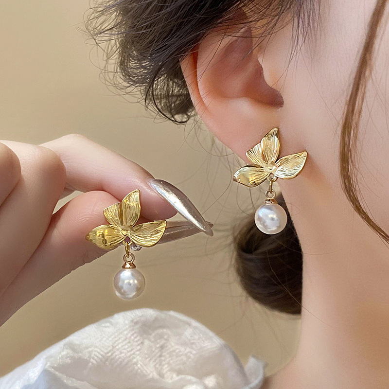 法式复古花朵蝴蝶珍珠流苏耳环轻奢高级感耳钉小众百搭耳饰批发女