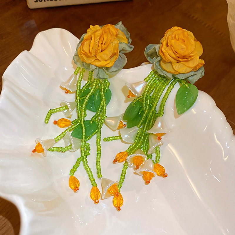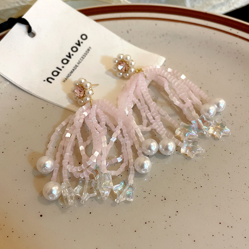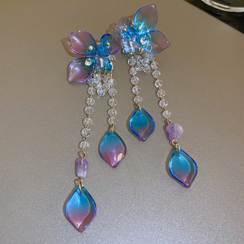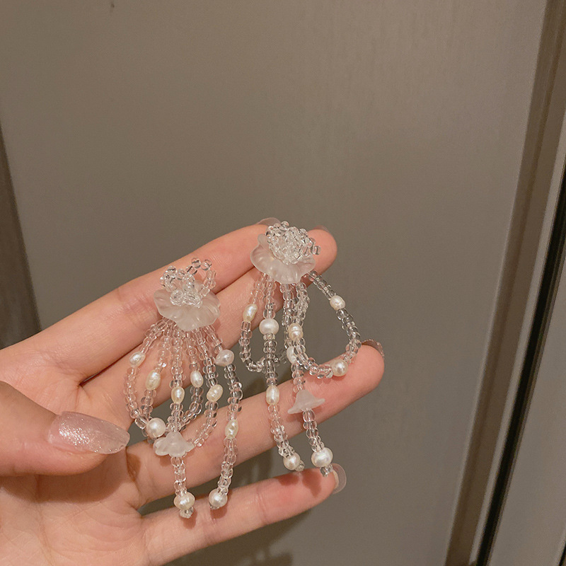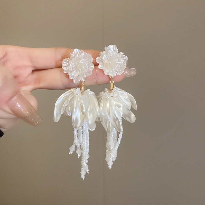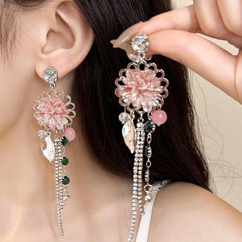 氛围感银针花朵流苏耳环ins小清新气质耳钉时尚高级感耳饰批发女