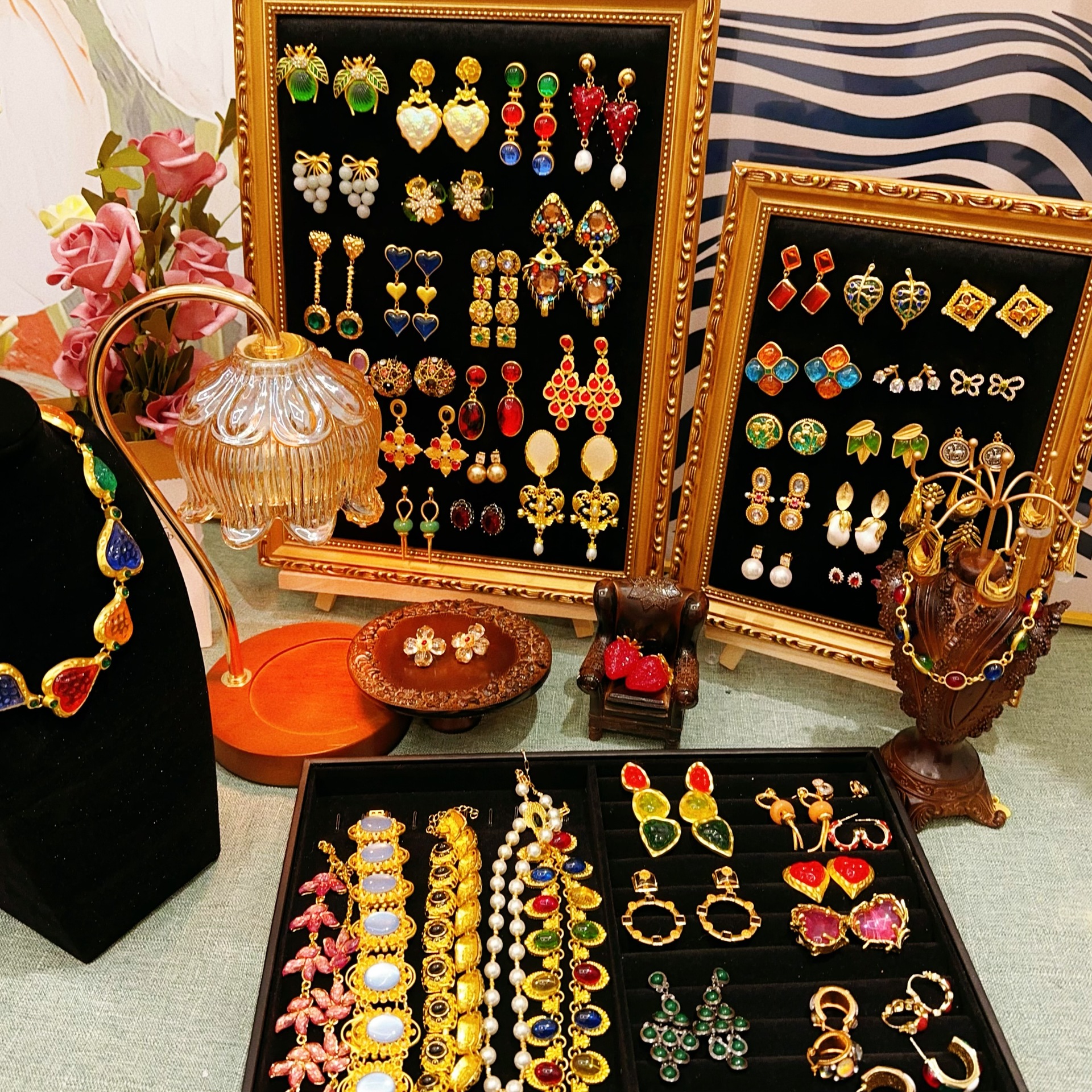 中古vintage复古耳环 时尚百搭轻奢设计感耳钉高级感耳饰品批发女