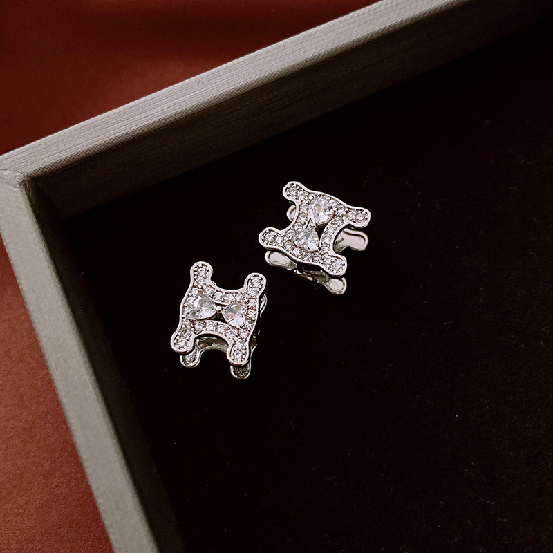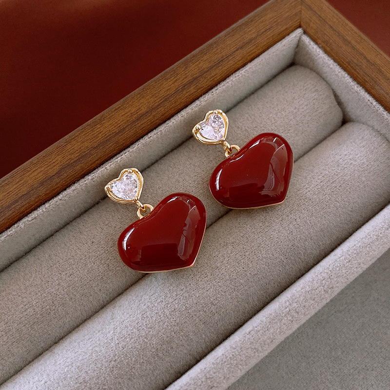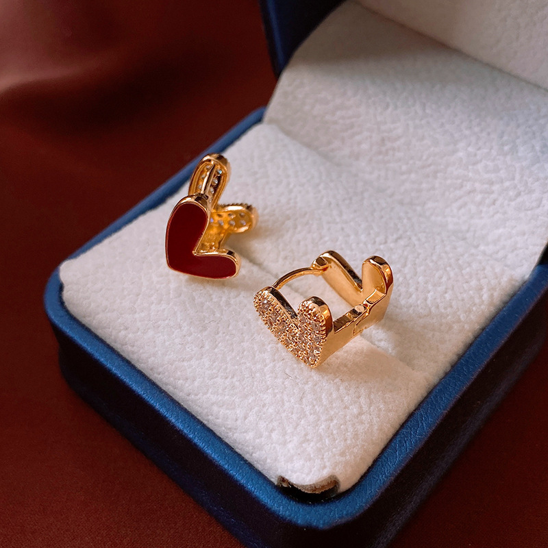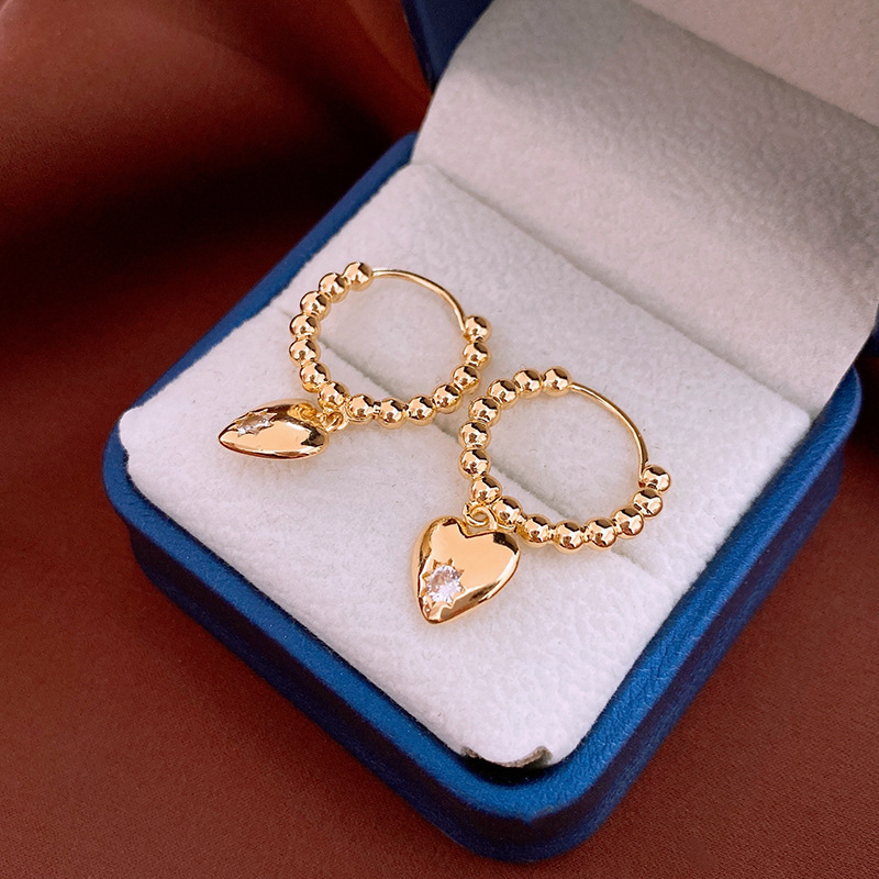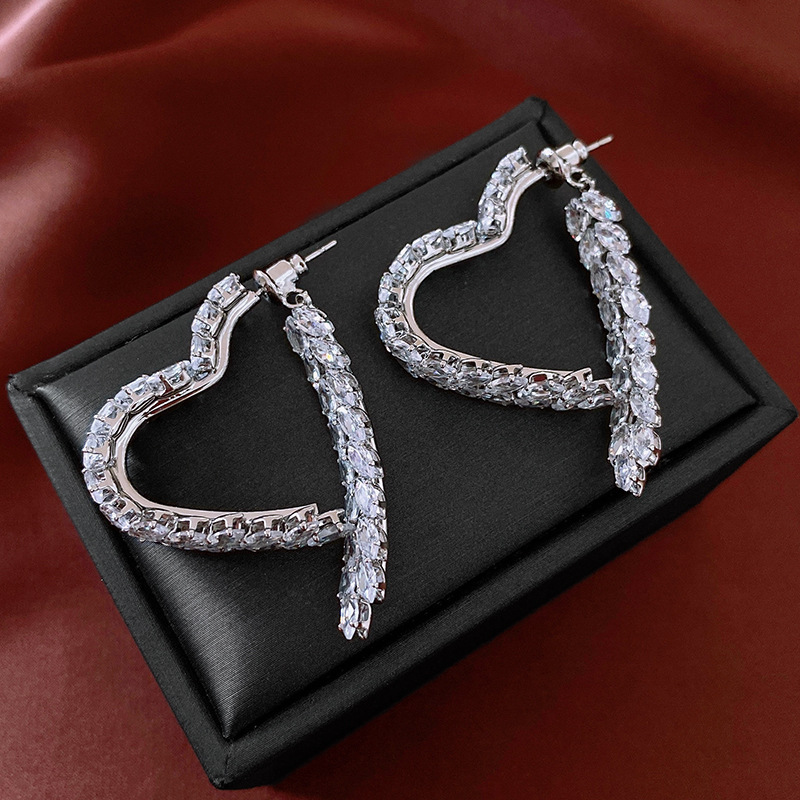 真金电镀银针锆石爱心耳环跨境轻奢高级感耳钉ins小众耳饰批发女
