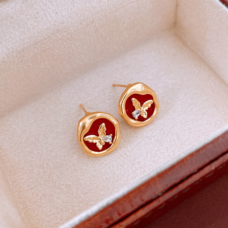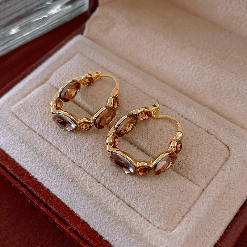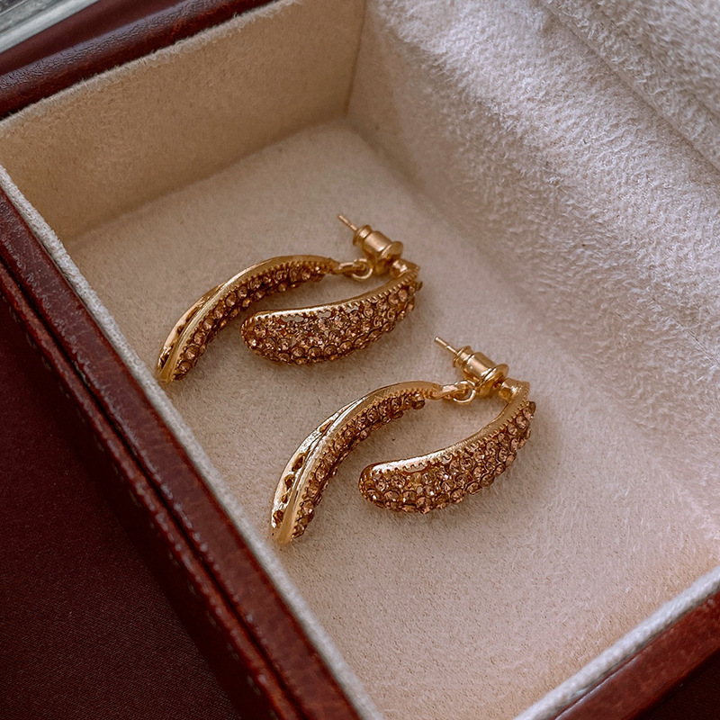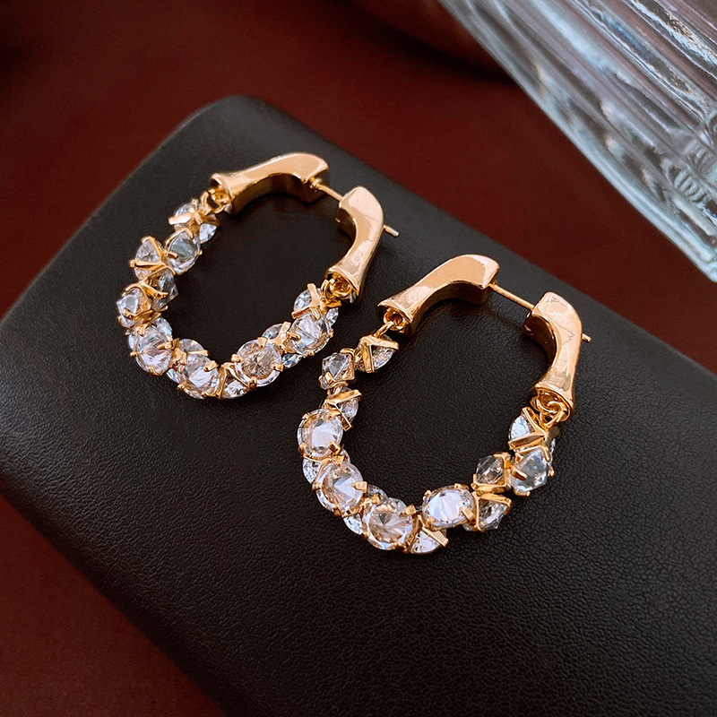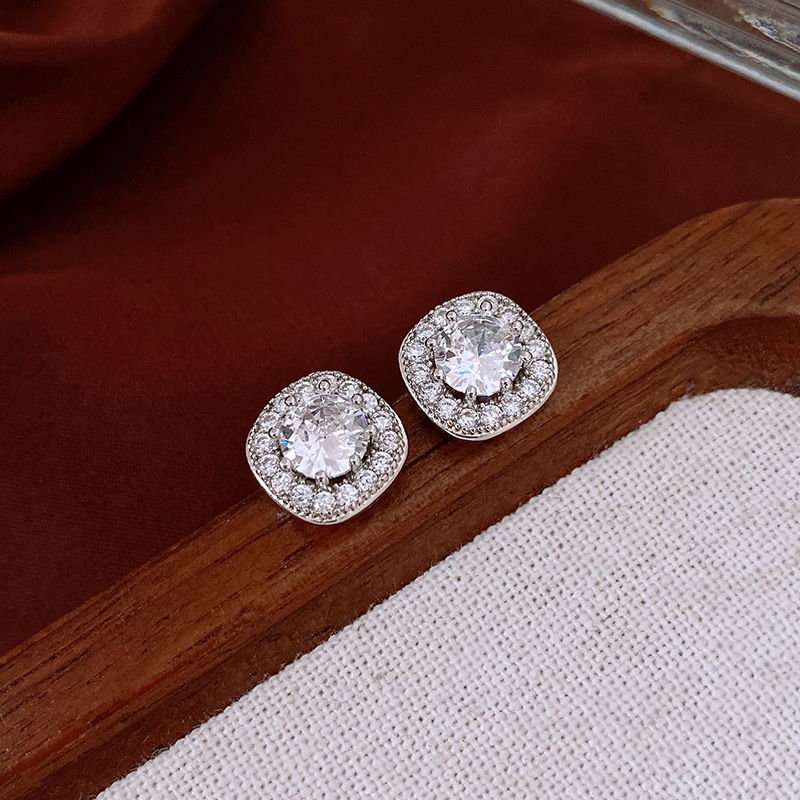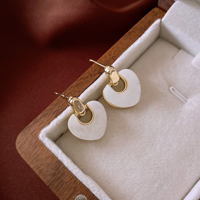 真金电镀银针锆石爱心耳环跨境轻奢高级感耳钉ins小众耳饰批发女