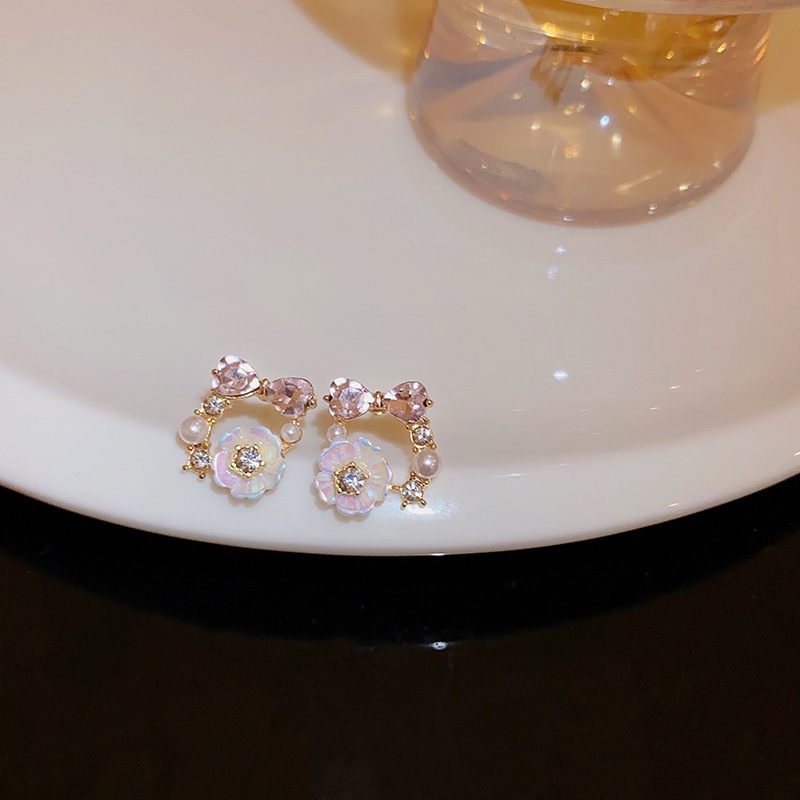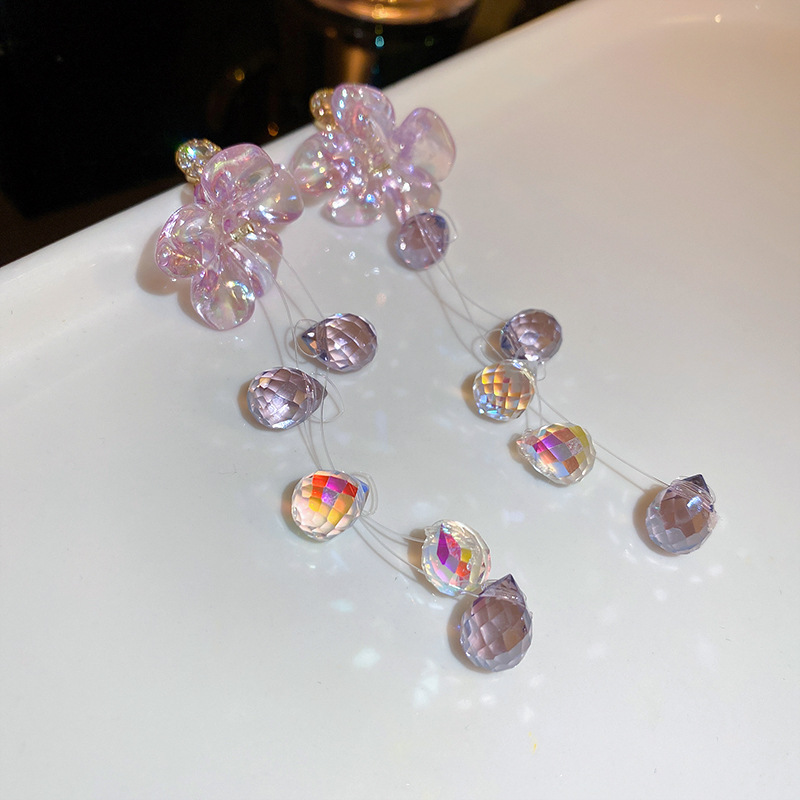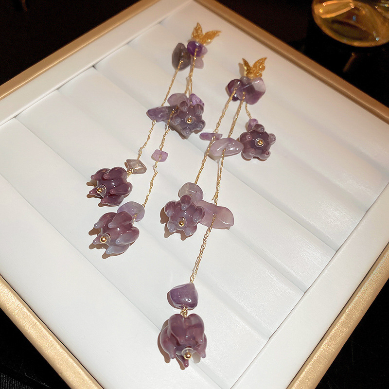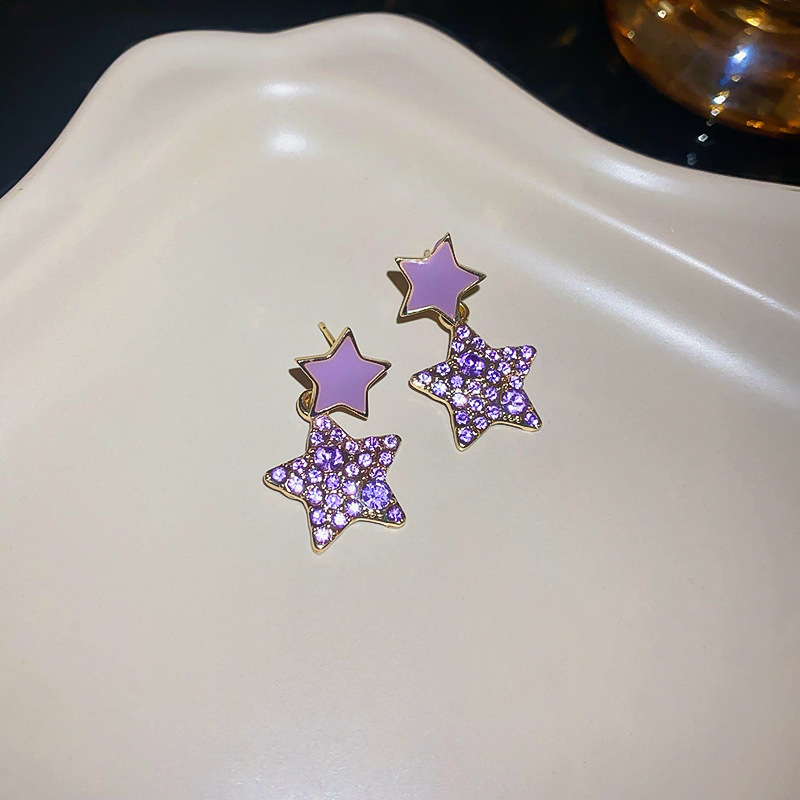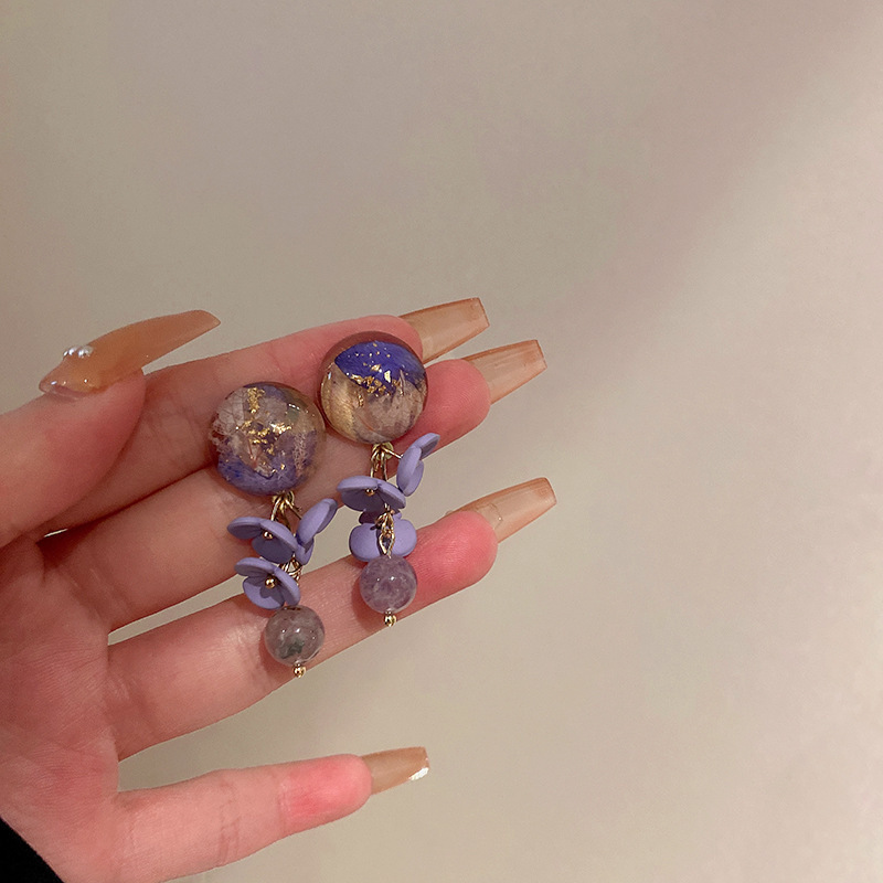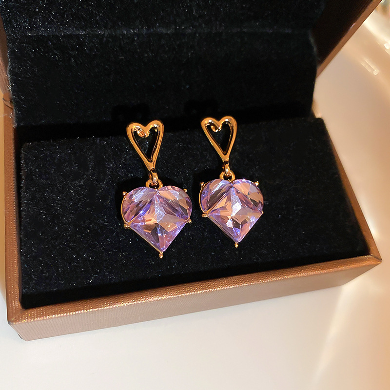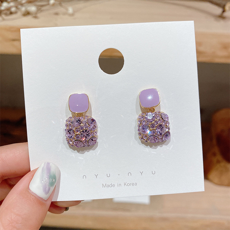 银针镶钻珍珠紫色耳环法式复古小众设计感耳坠轻奢高级感耳饰批发