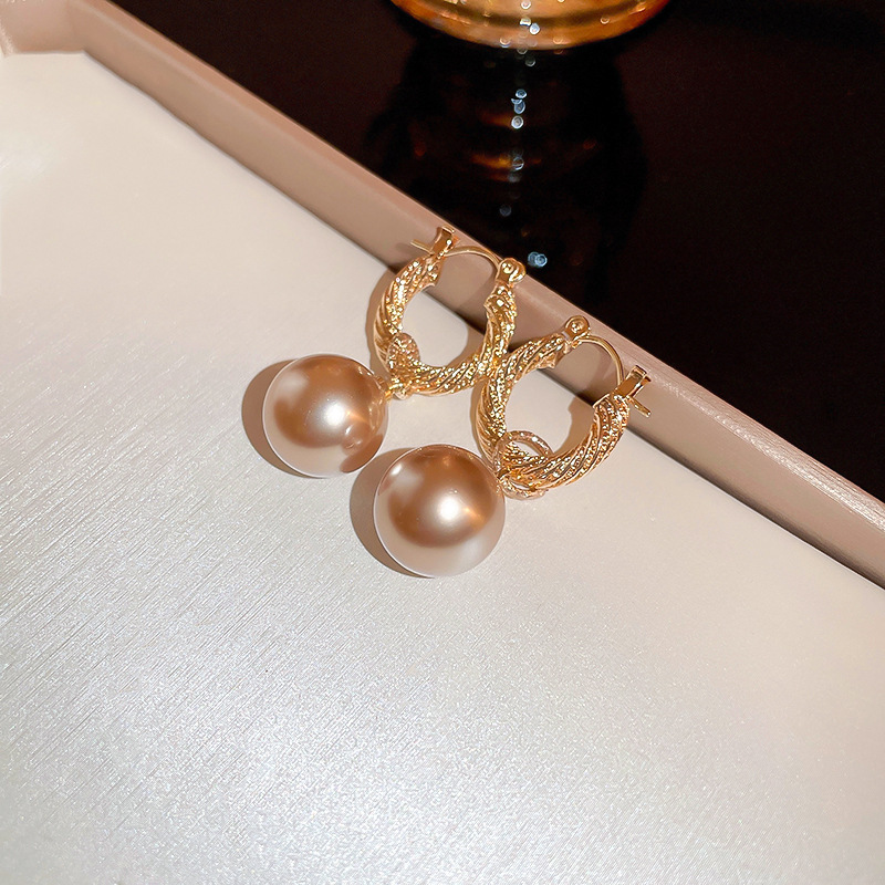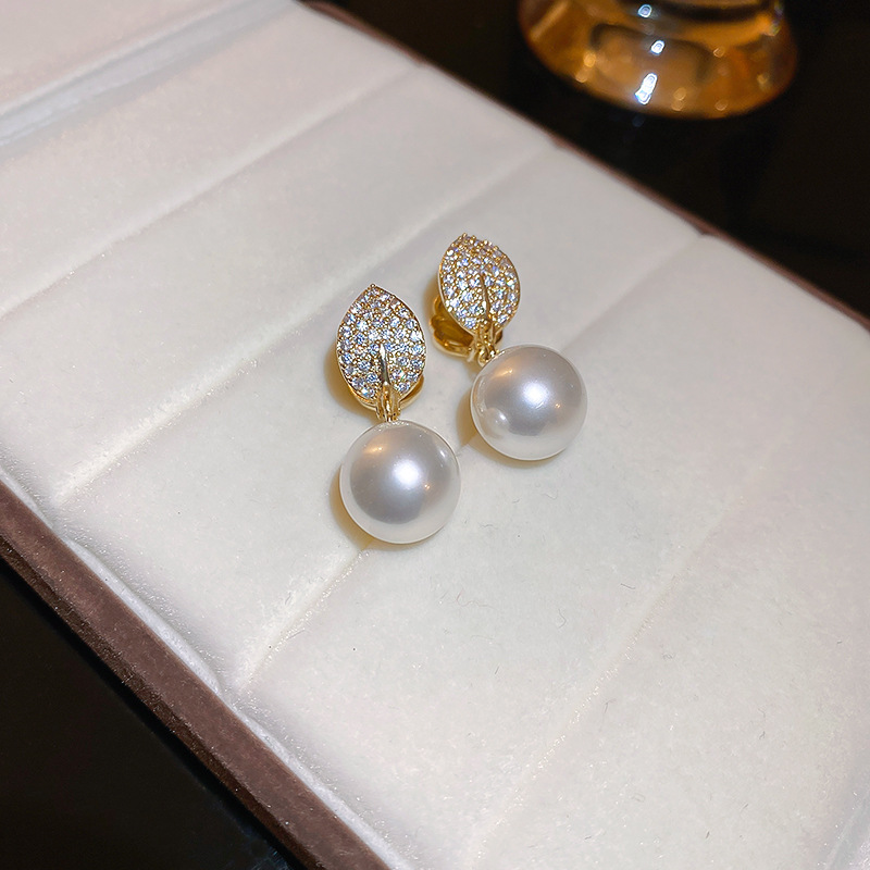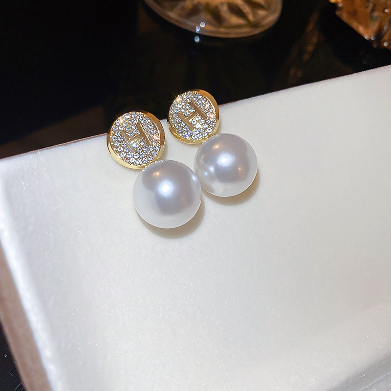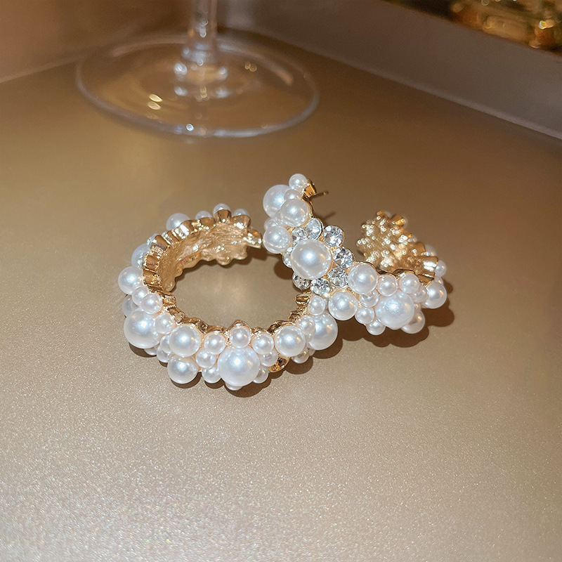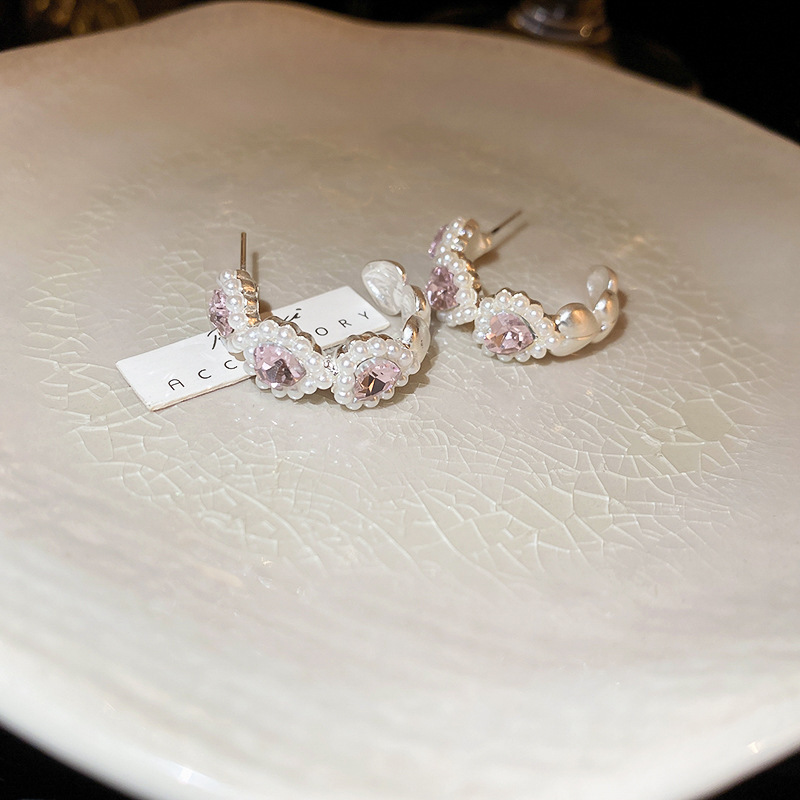 银针镶钻珍珠C形耳环法式复古高级感气质耳钉个性轻奢耳饰女批发