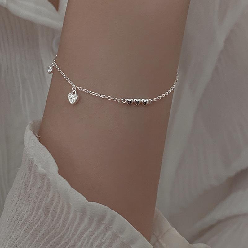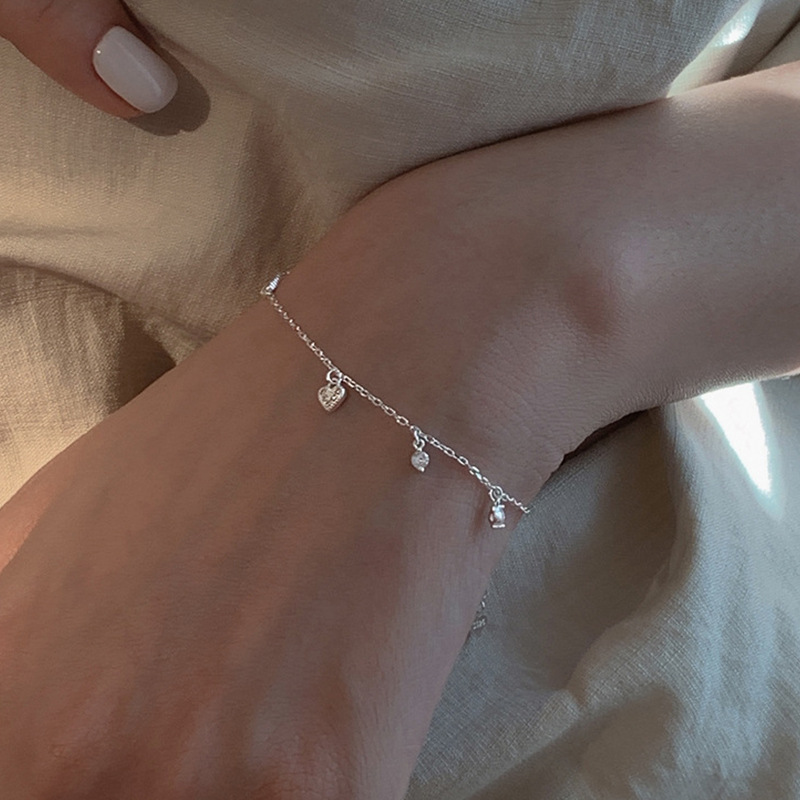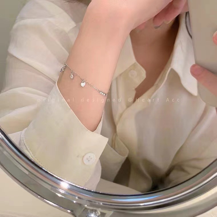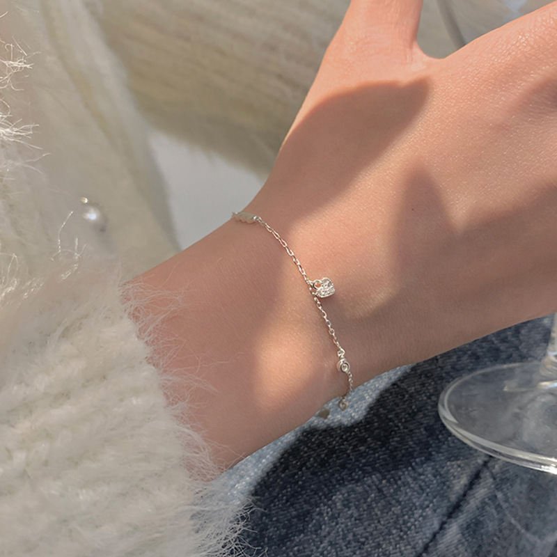 闪钻光面爱心手链女简约创意小众设计感ins冷淡风学闺蜜手链 女