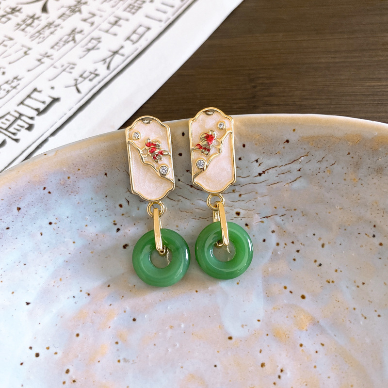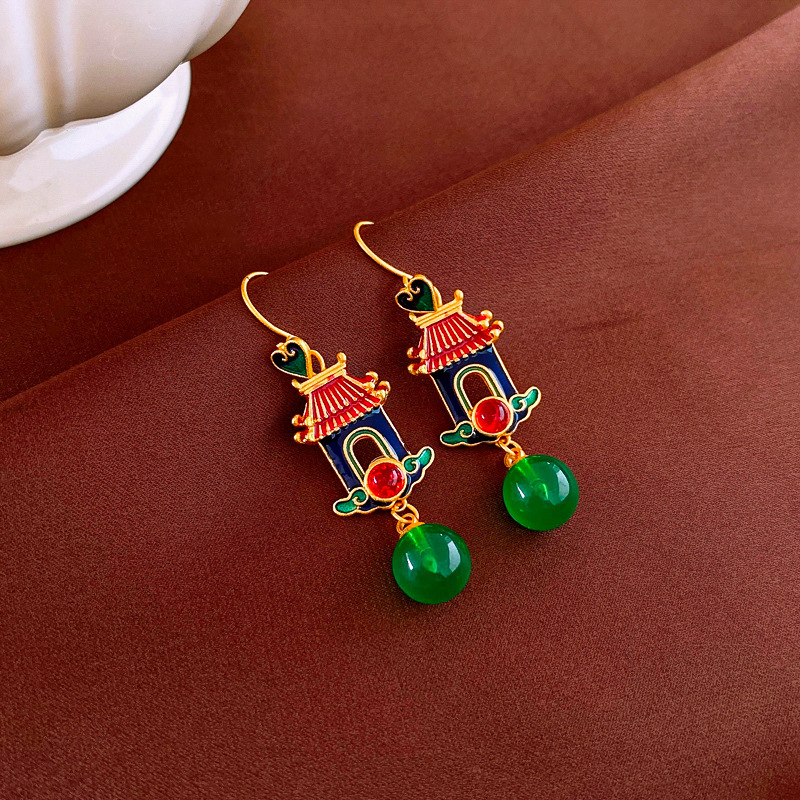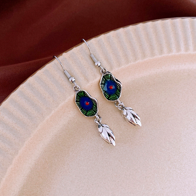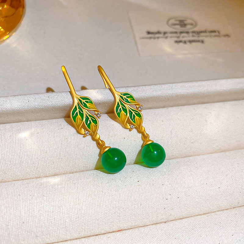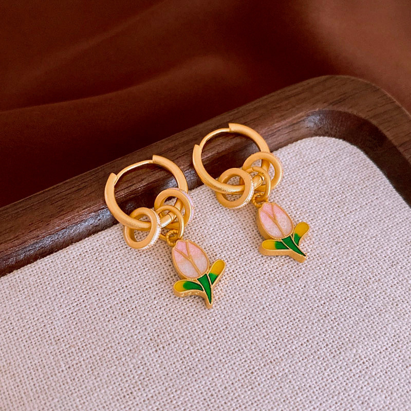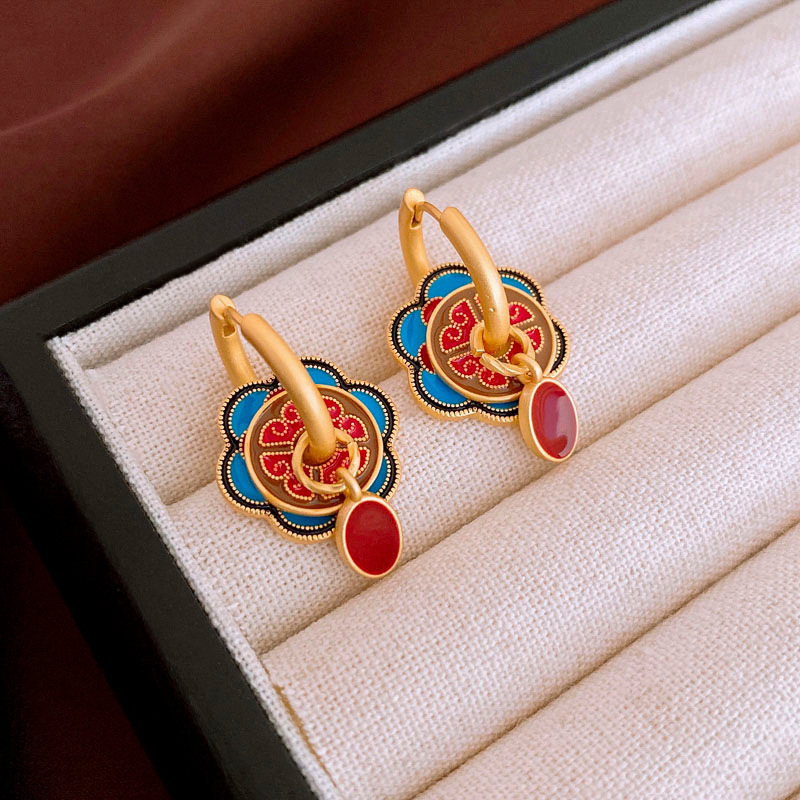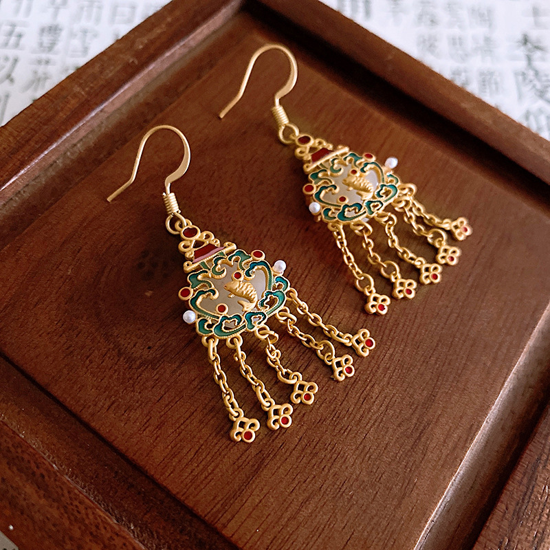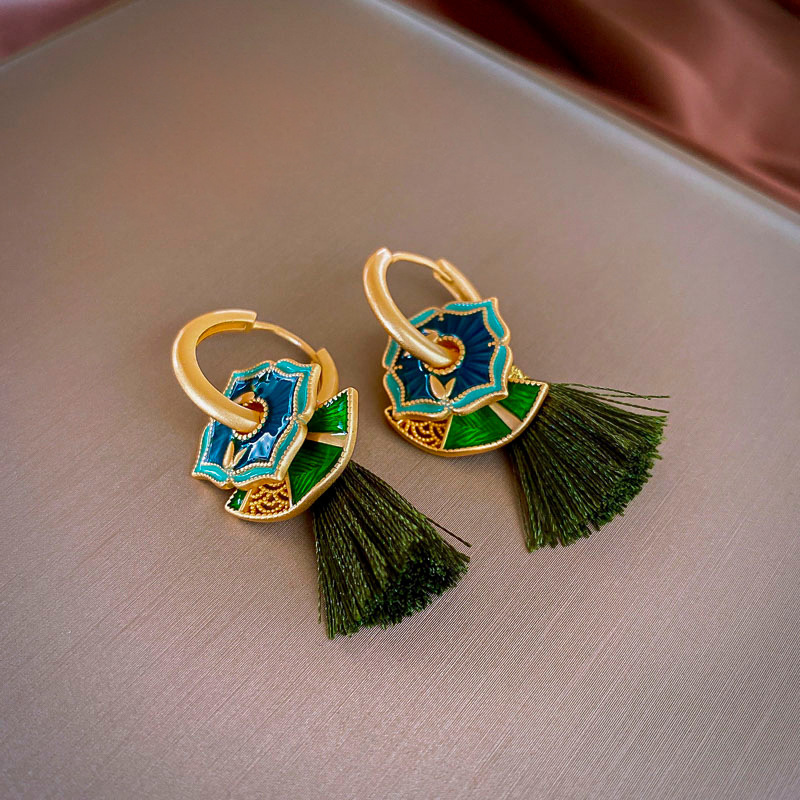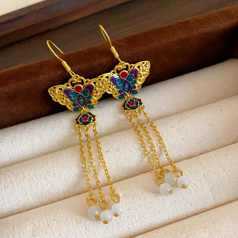 新中式珐琅滴油银针流苏耳环国风高级感耳钉小众宫廷风耳饰批发女