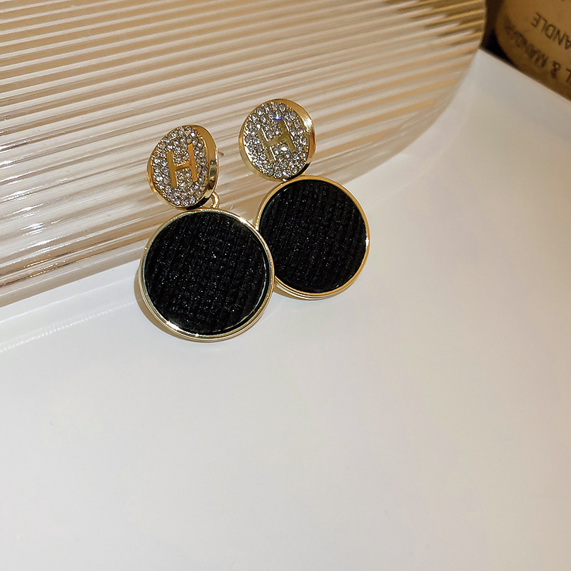 法式复古黑色耳环2024新款高级感气质耳钉秋冬时尚百搭耳饰批发女