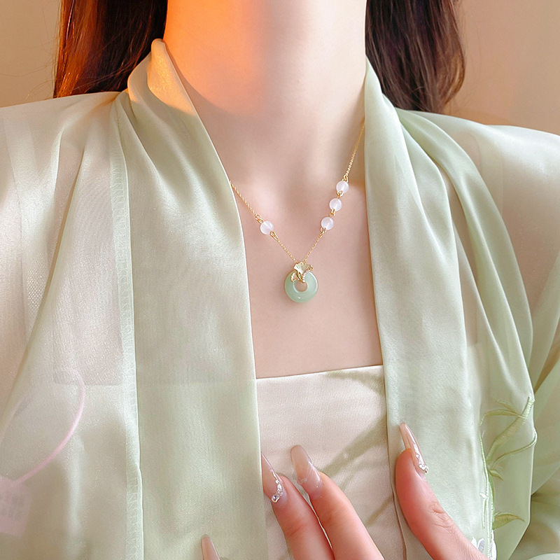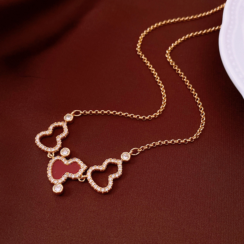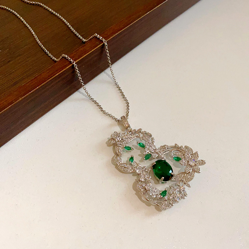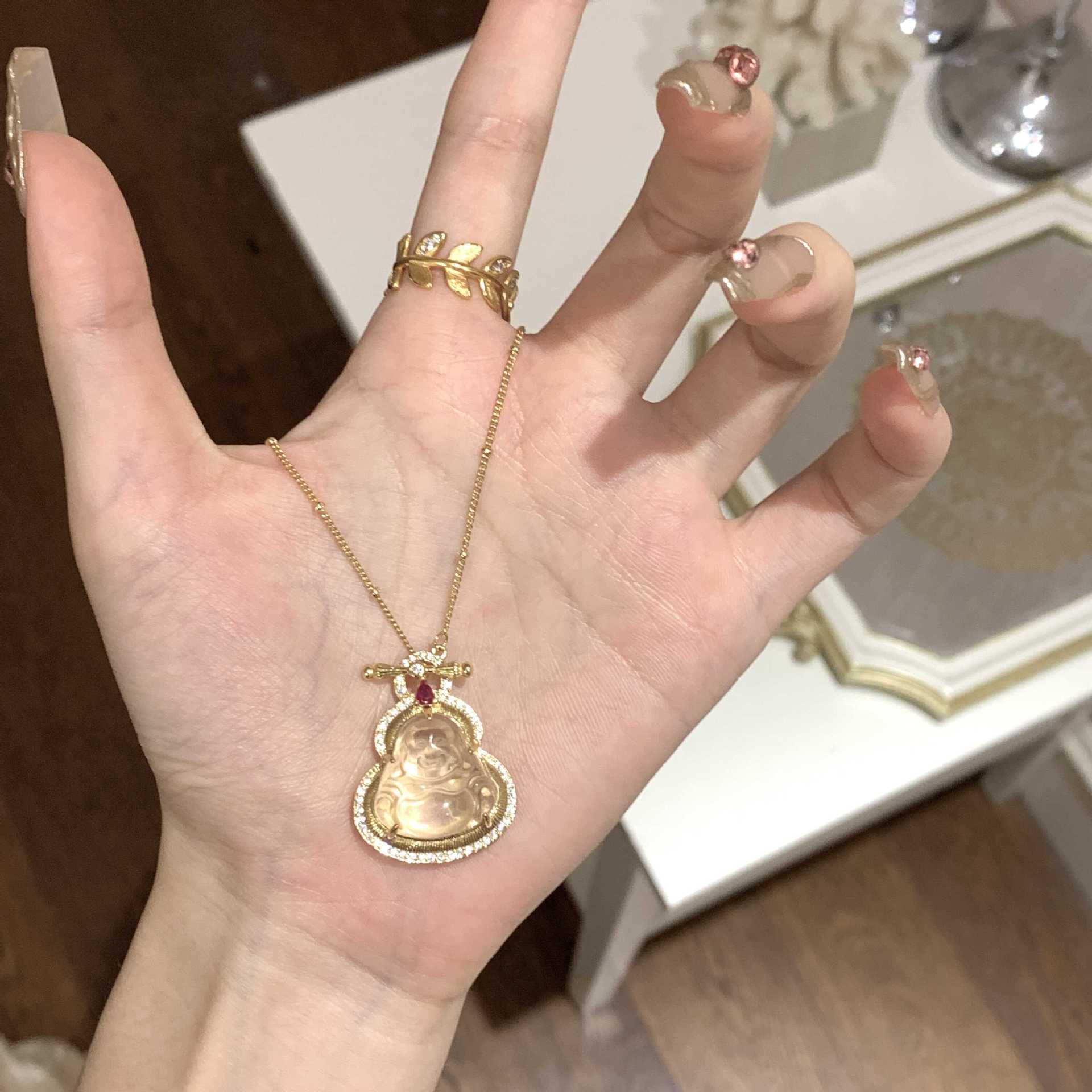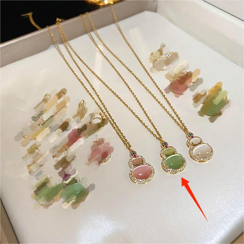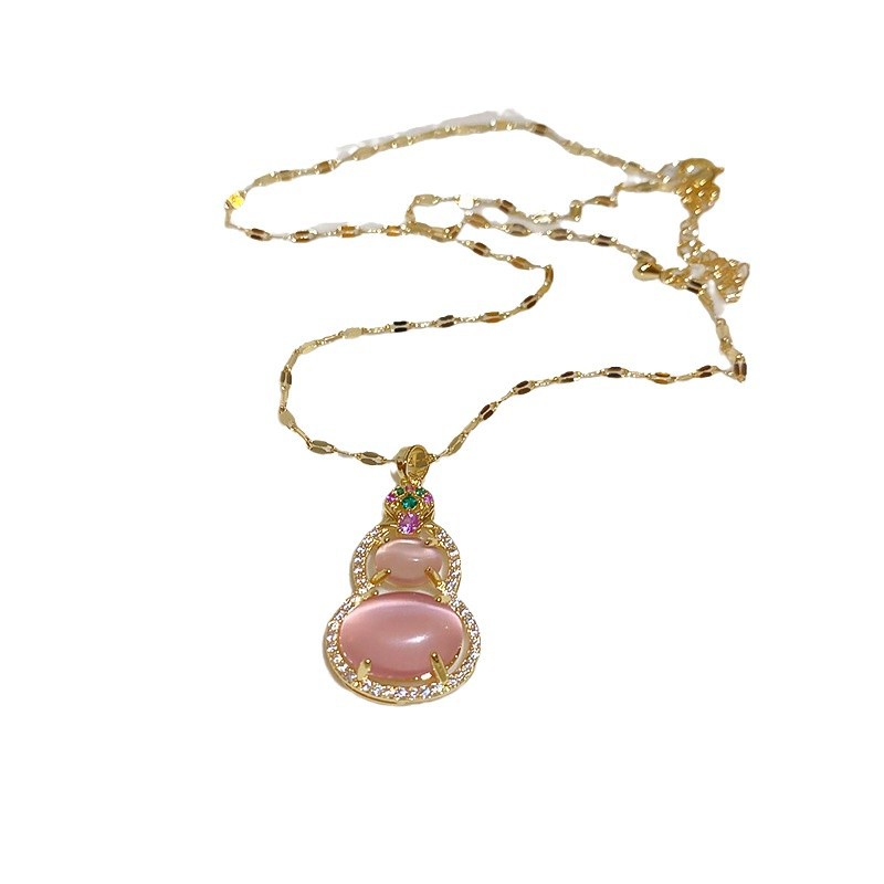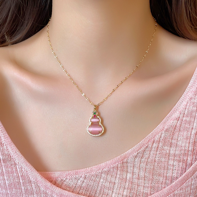 国潮人造猫眼石葫芦吊坠项链新中式小众毛衣链百搭高级感饰品批发
