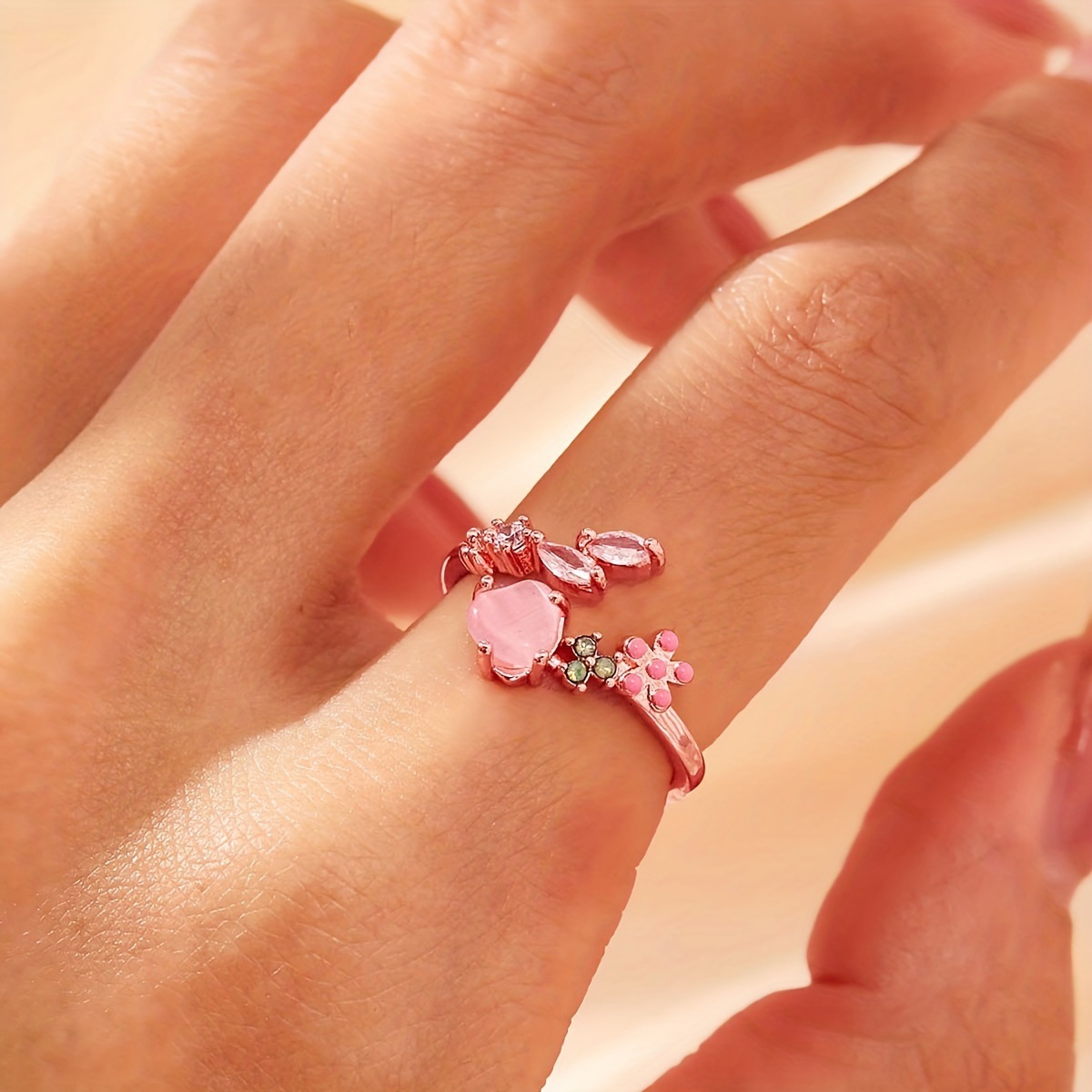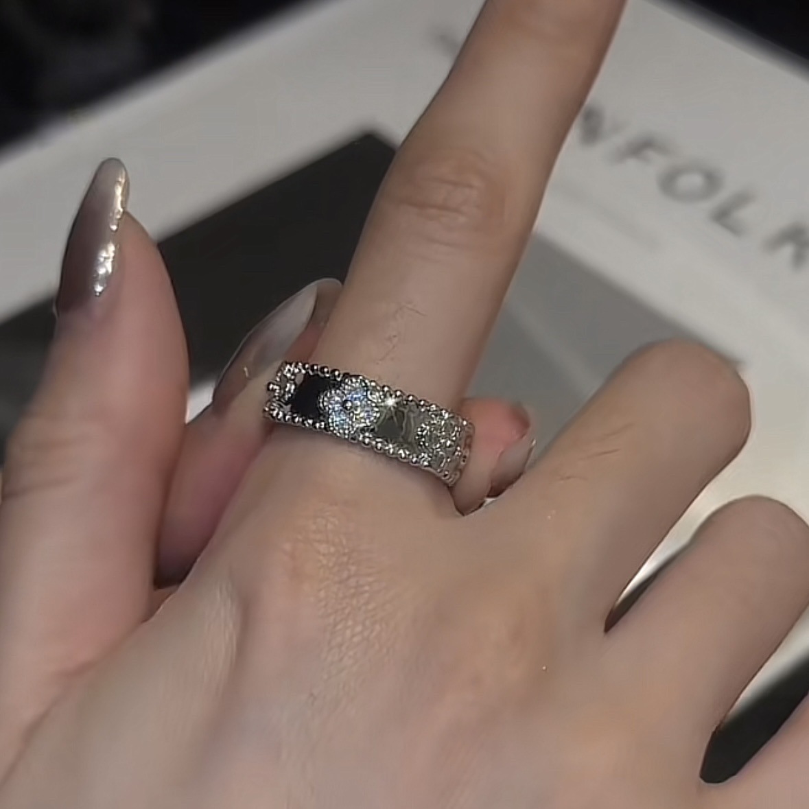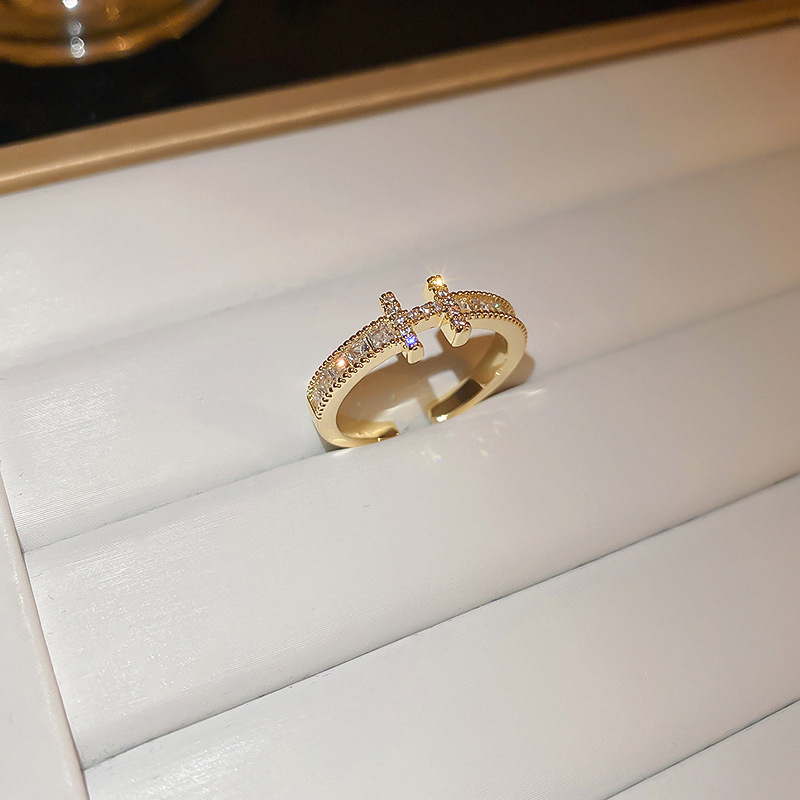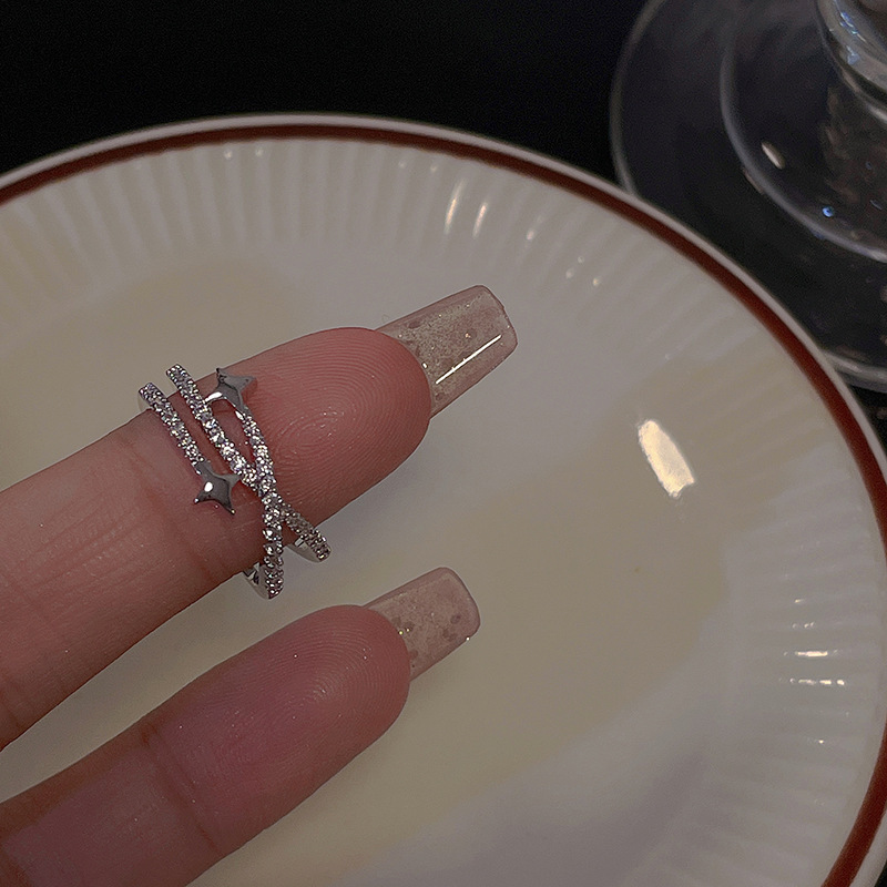 锆石几何开口戒指简约时尚食指戒气质轻奢百搭手饰批发女