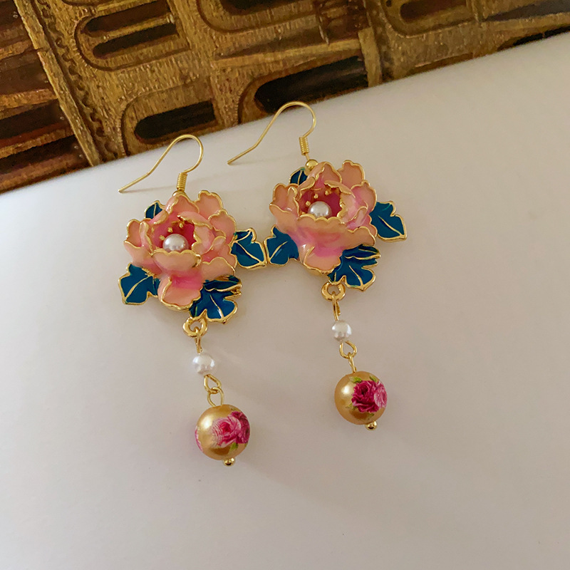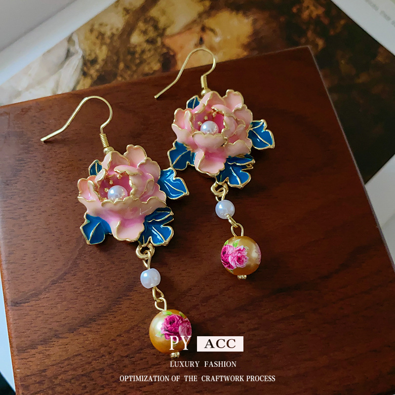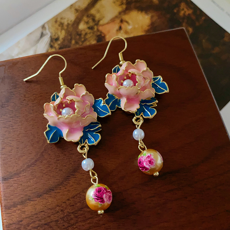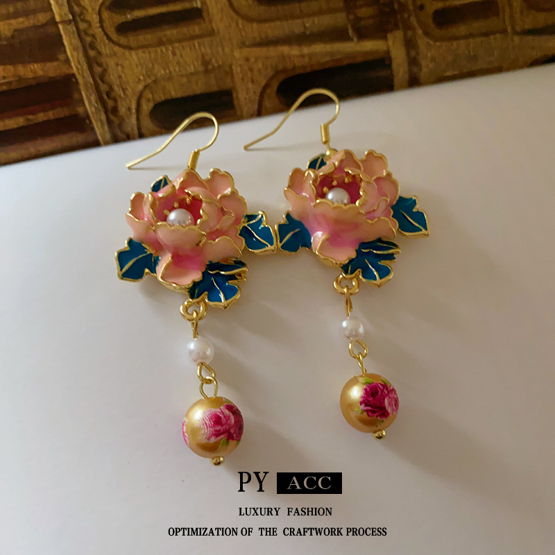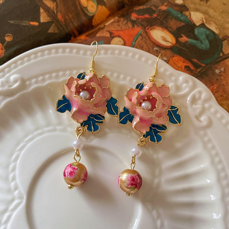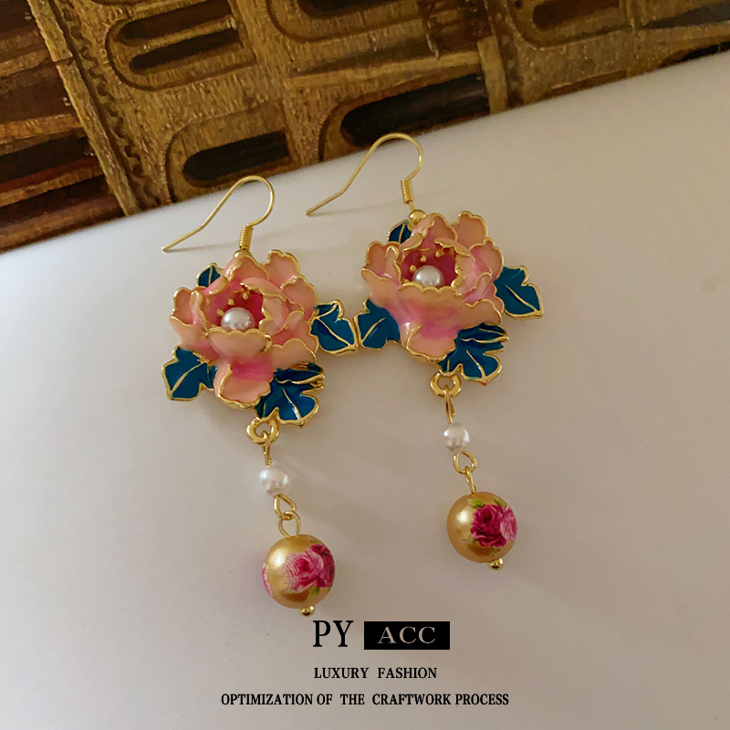 滴油花朵人造珍珠流苏耳环复古小众设计感耳钩高级感气质耳饰批发