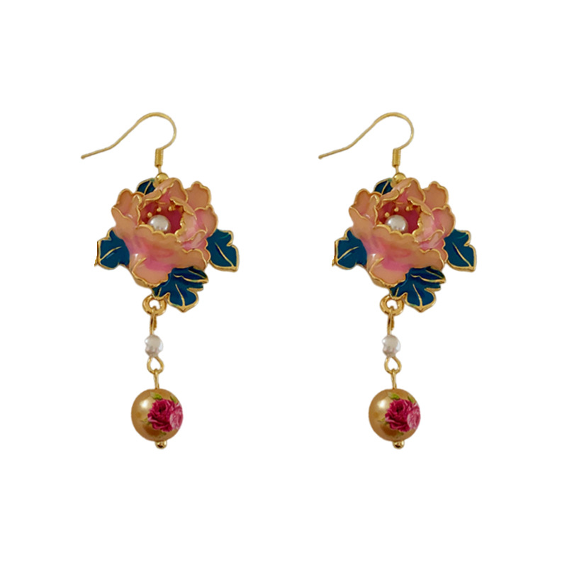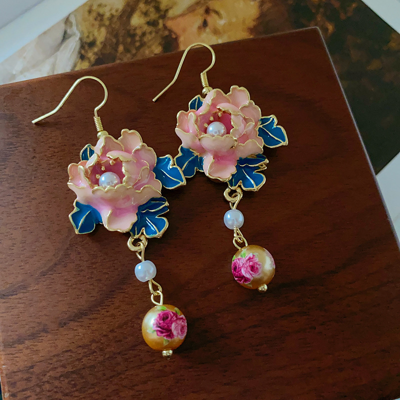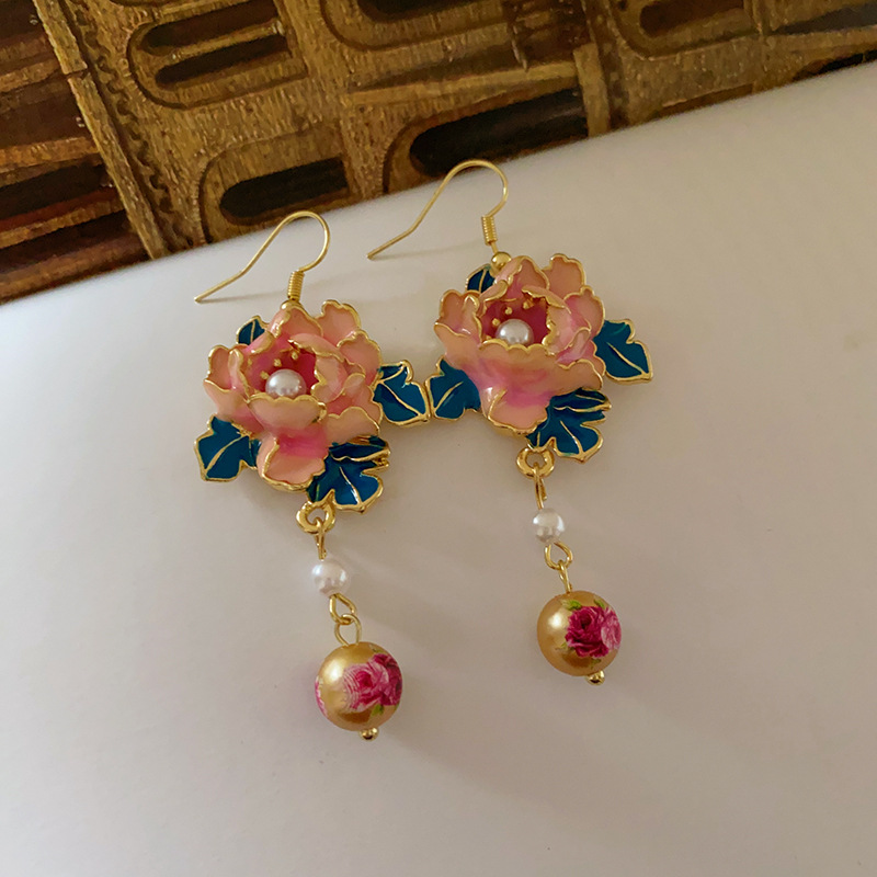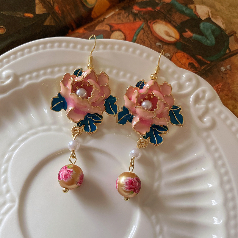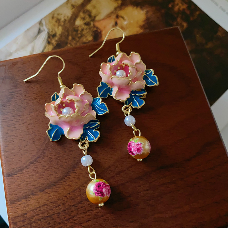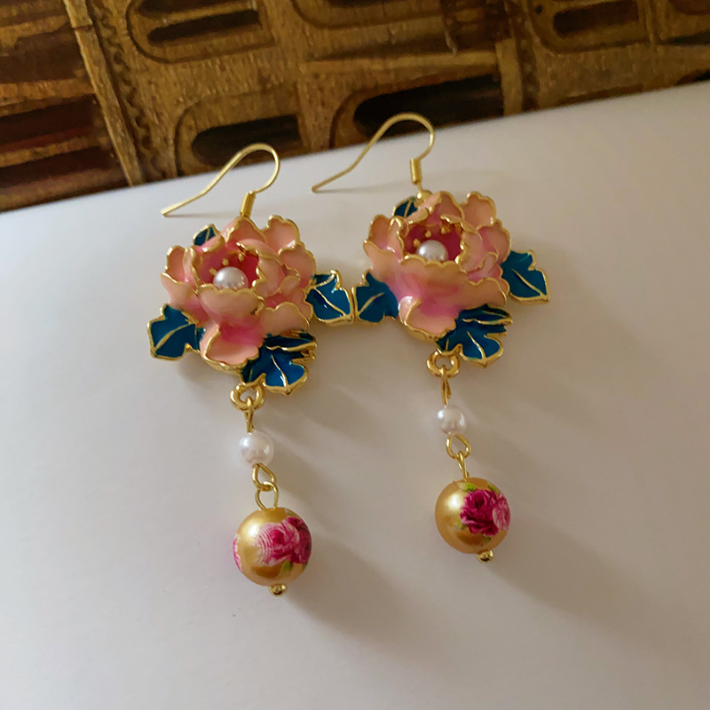 滴油花朵人造珍珠流苏耳环复古小众设计感耳钩高级感气质耳饰批发