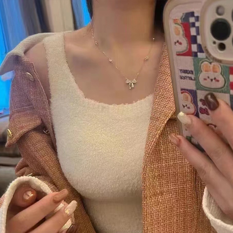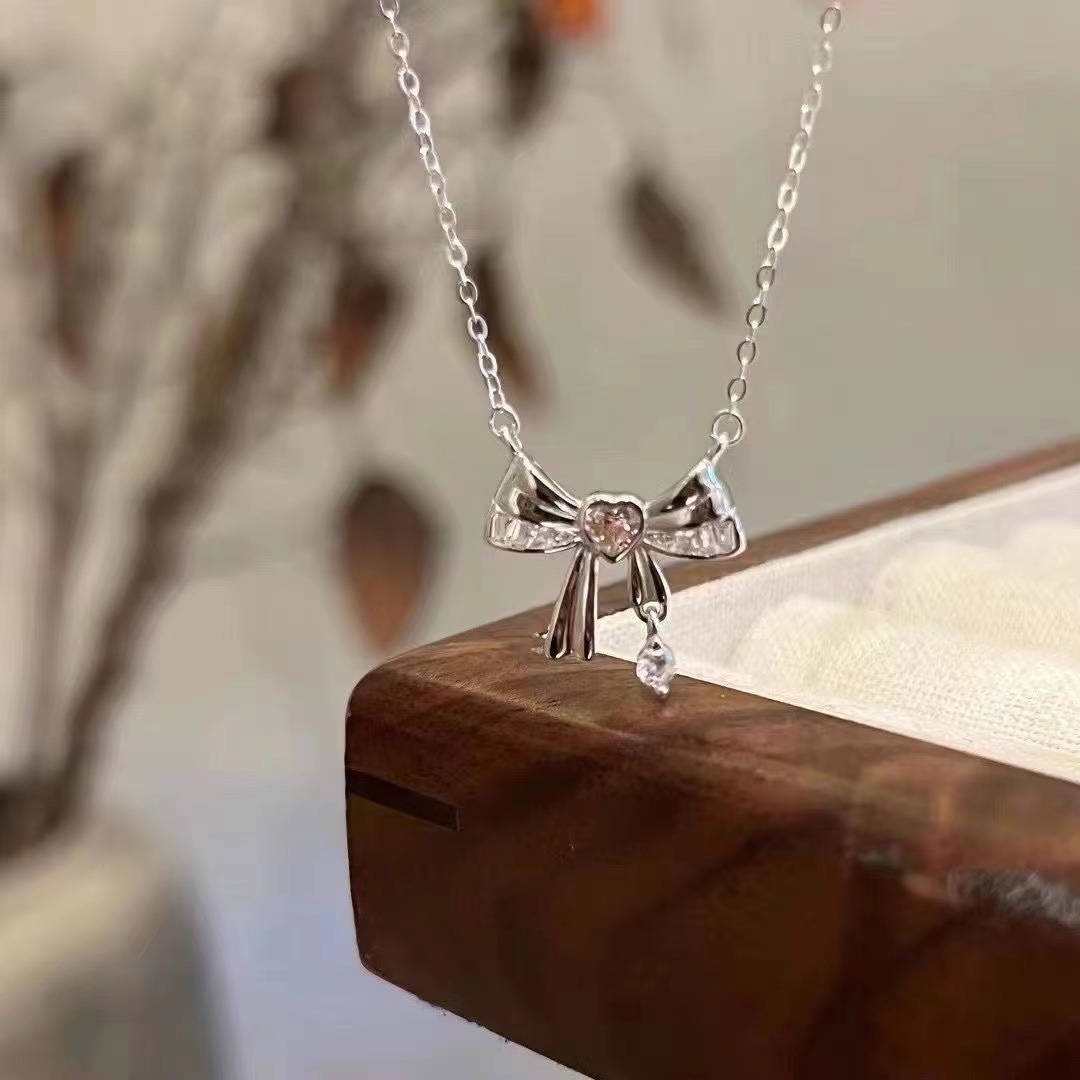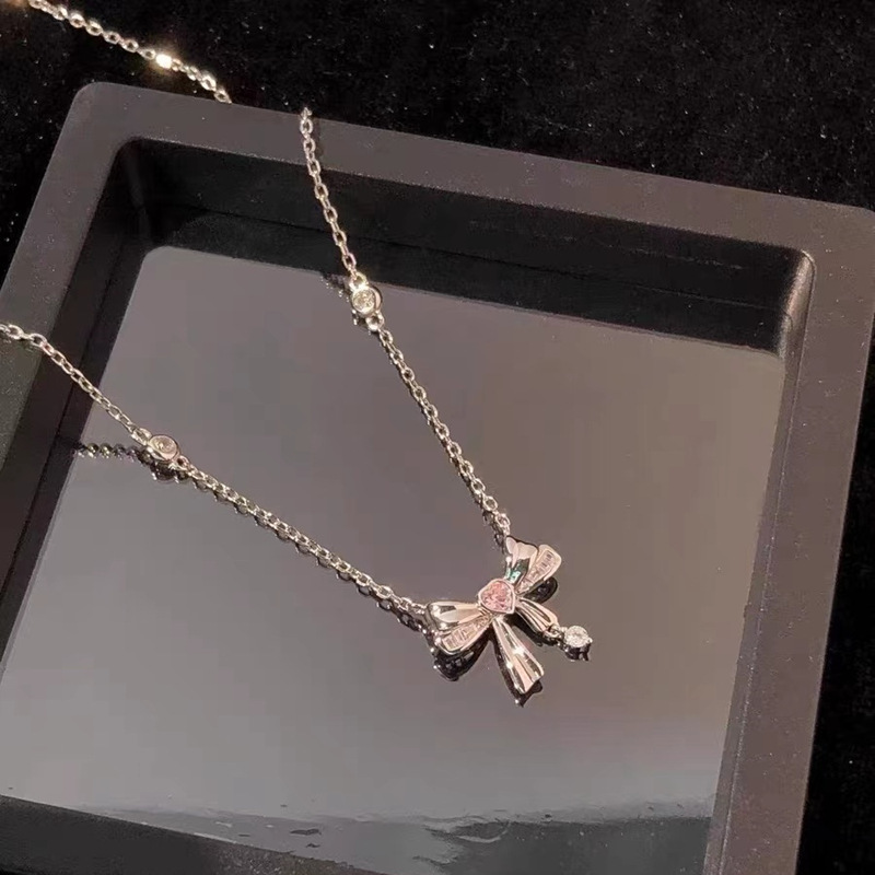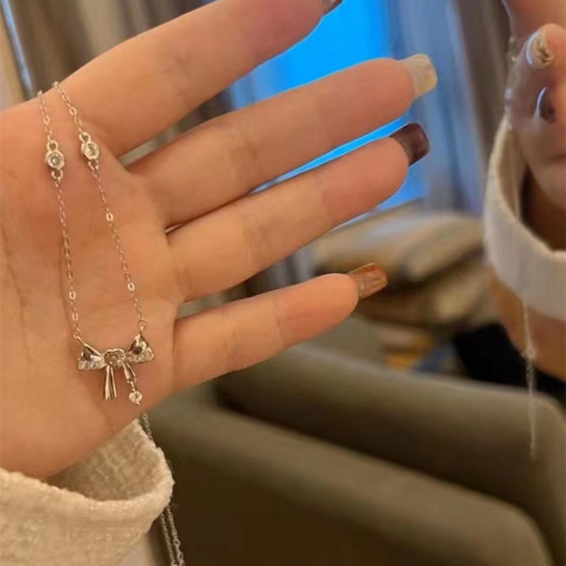 甜心蝴蝶结项链女2023年新款气质百搭配饰小众设计感简约锁骨链