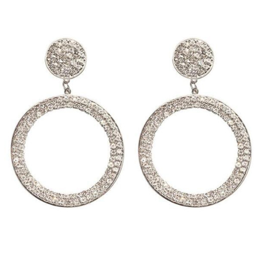 S925银针镶钻耳环高级感耳饰夸张耳坠女几何圆形镶钻耳钉耳饰批发