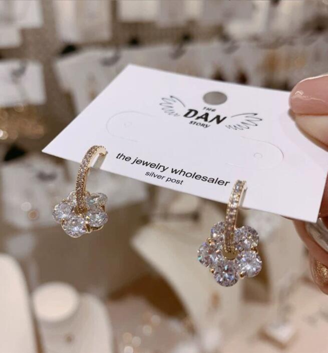 925银针镶钻耳环简约气质耳环高级感小众耳钉耳饰批发女耳坠