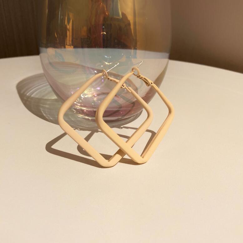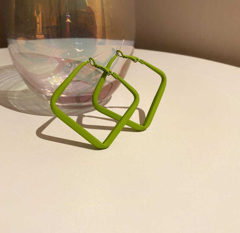 925银针耳环糖果色几何圆形圈圈c形耳圈彩色喷漆耳钉夸张网红耳饰