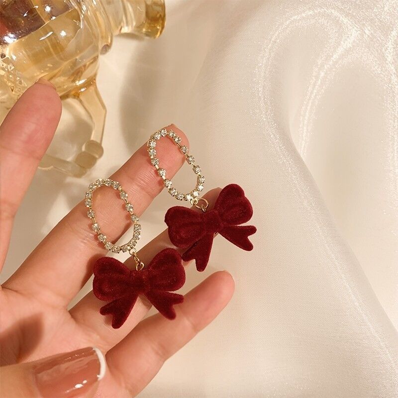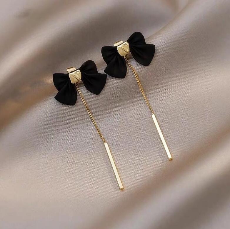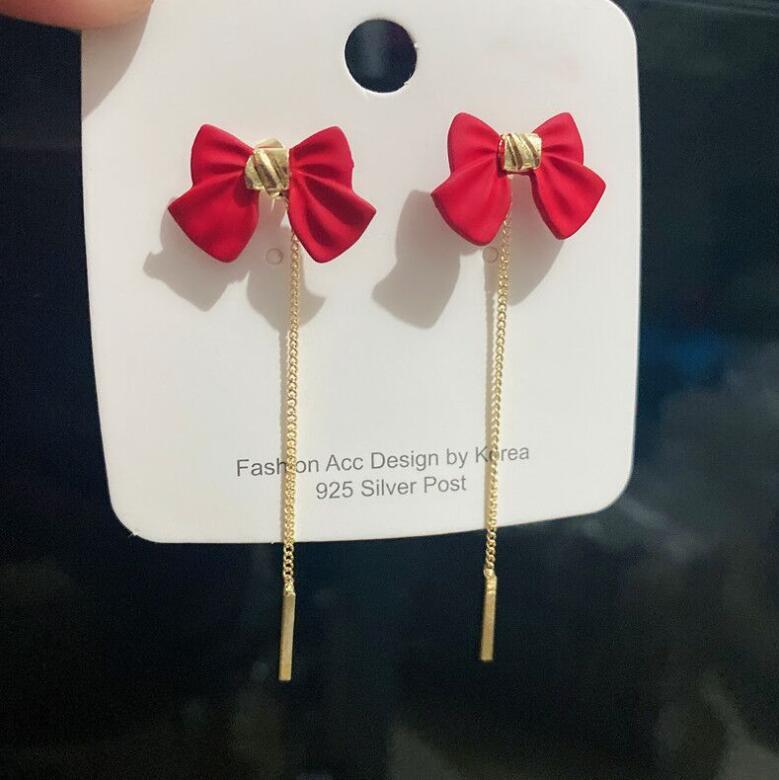 925银针长款流苏耳环高级感蝴蝶结镶钻设计感耳坠链条耳钉耳饰女