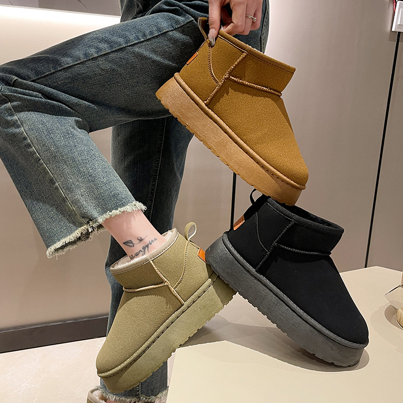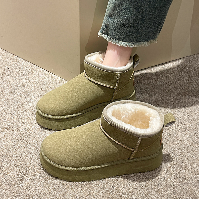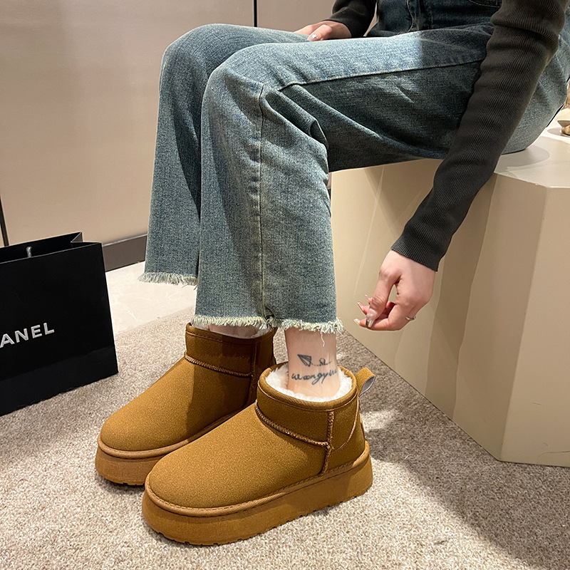 皮毛一体雪地靴女2024冬新款厚底外穿毛毛鞋冬季新款松糕底短筒靴