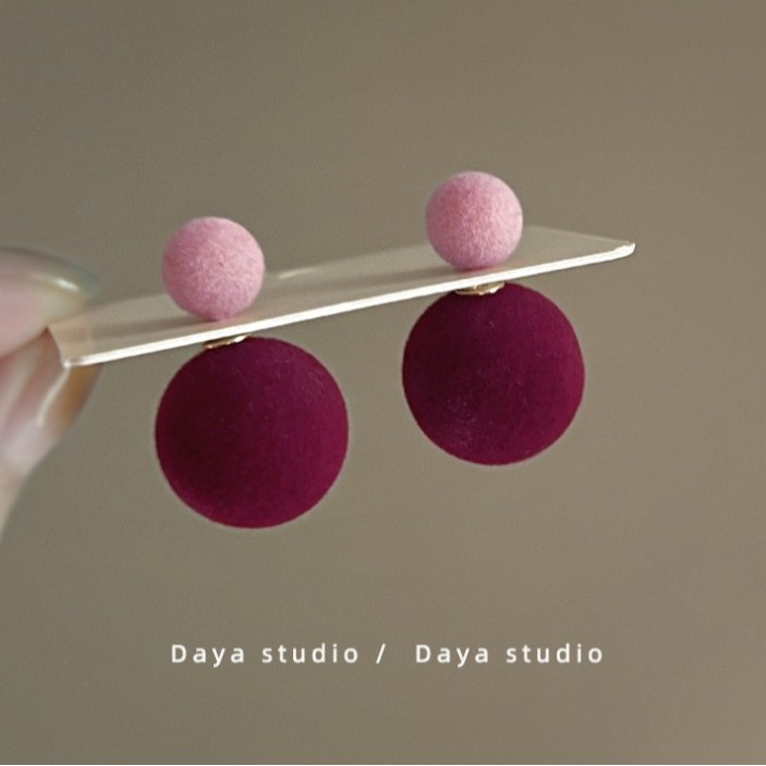 秋冬高级感小众气质甜美耳钉一款两戴植绒圆球耳环双面珍珠耳钉女