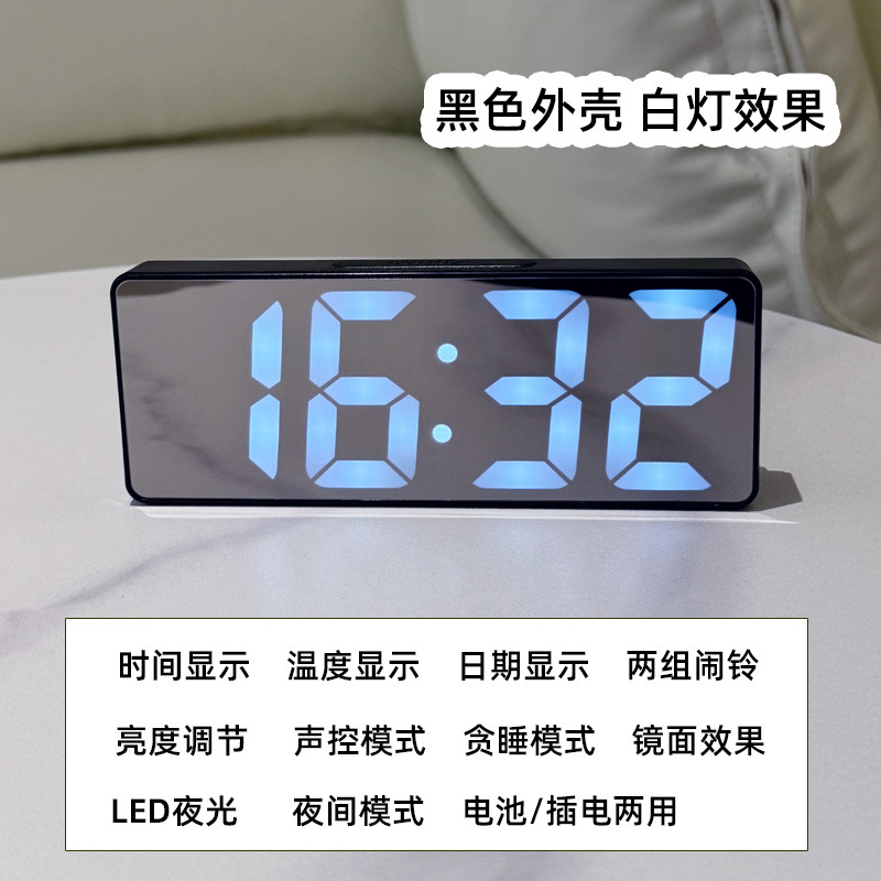 跨境推荐LED镜面电子闹钟USB电池两用智能声控时钟学生专用闹钟