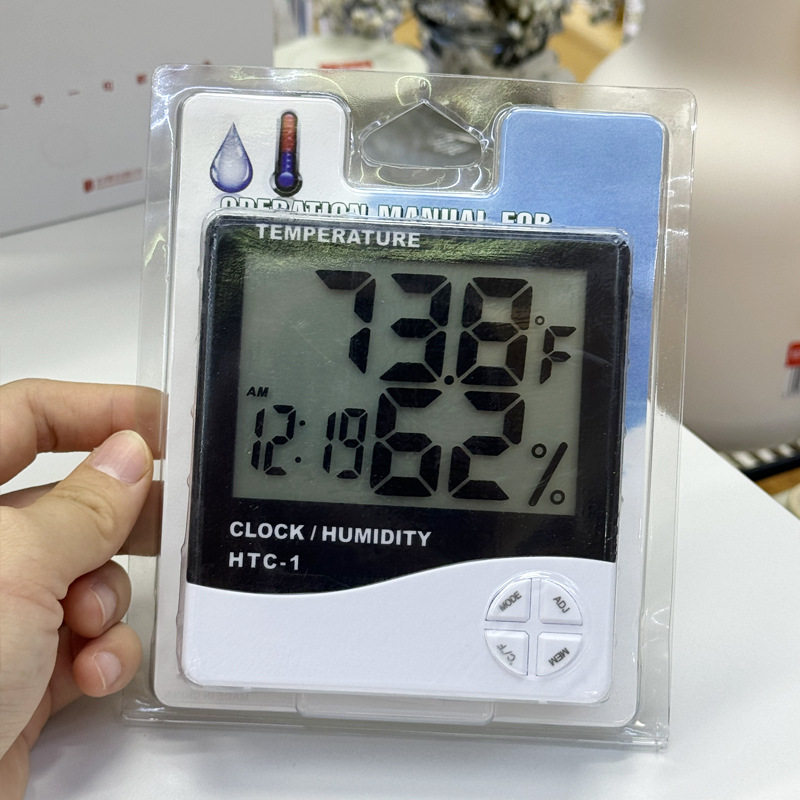 跨境热销HTC-1室内电子温度计闹钟家用大屏幕温湿度计闹钟礼品