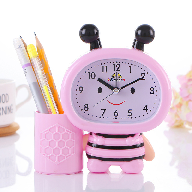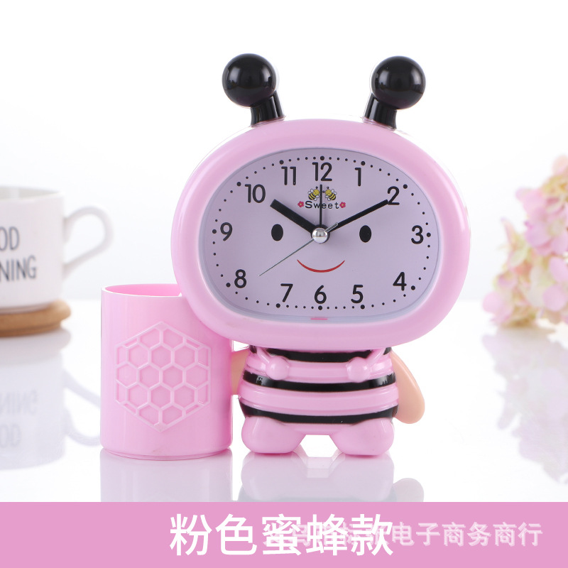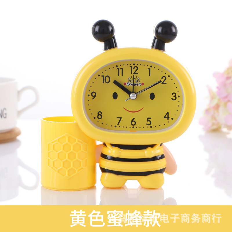 现货批发 7032蜜蜂笔筒小闹钟 学生床头闹钟创意六一儿童礼品闹钟